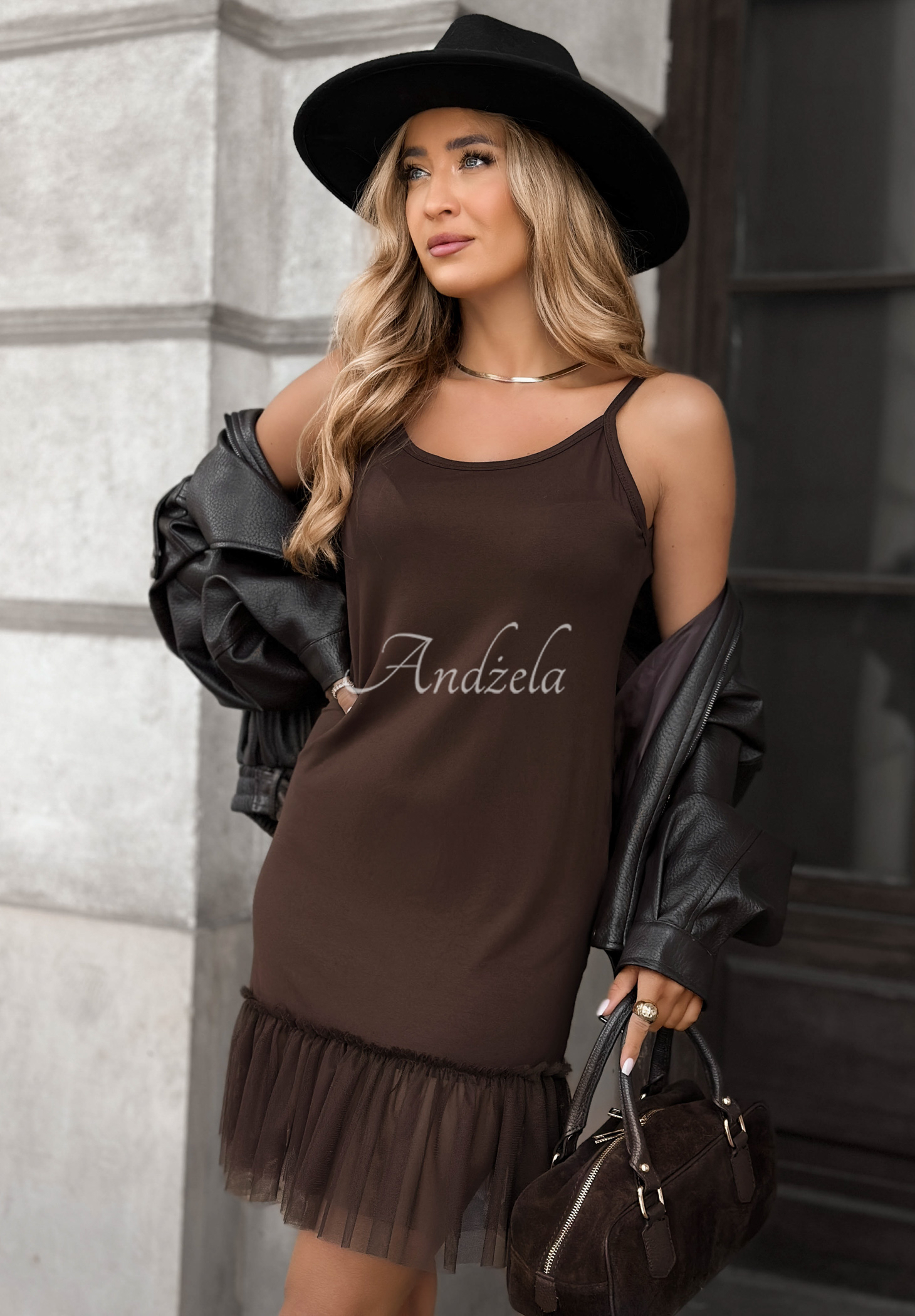 Rochie simplă, confecționată din material de viscoză de calitate. Modelul se remarcă prin finisajul din tul în partea de jos. Propunere pe bretele subțiri, nereg labile.* material elastic* finisaj din tul* bretele subțiri, nereglabile