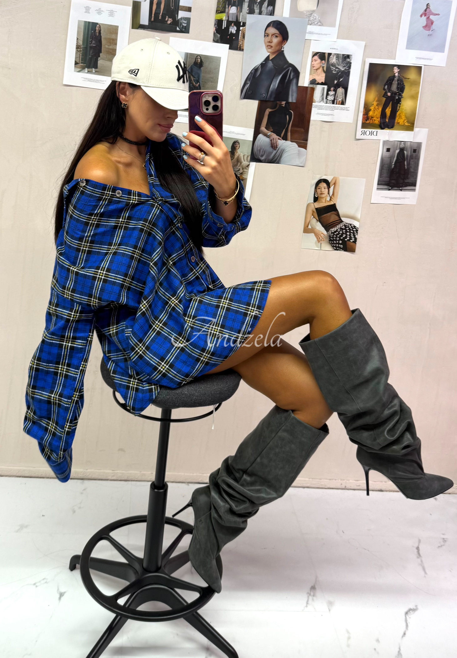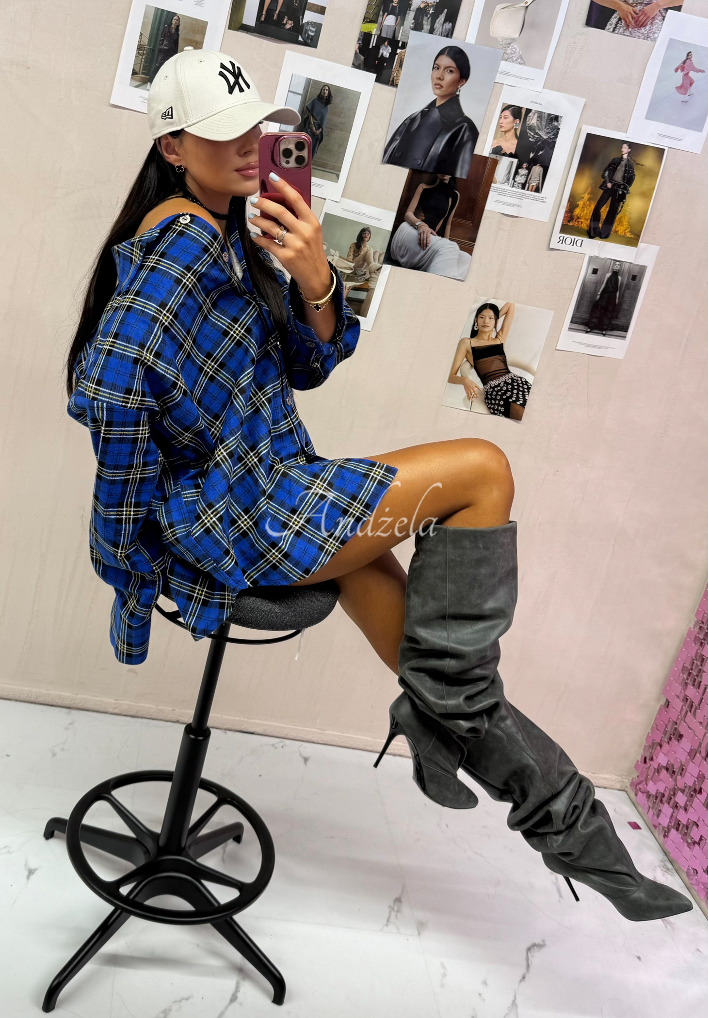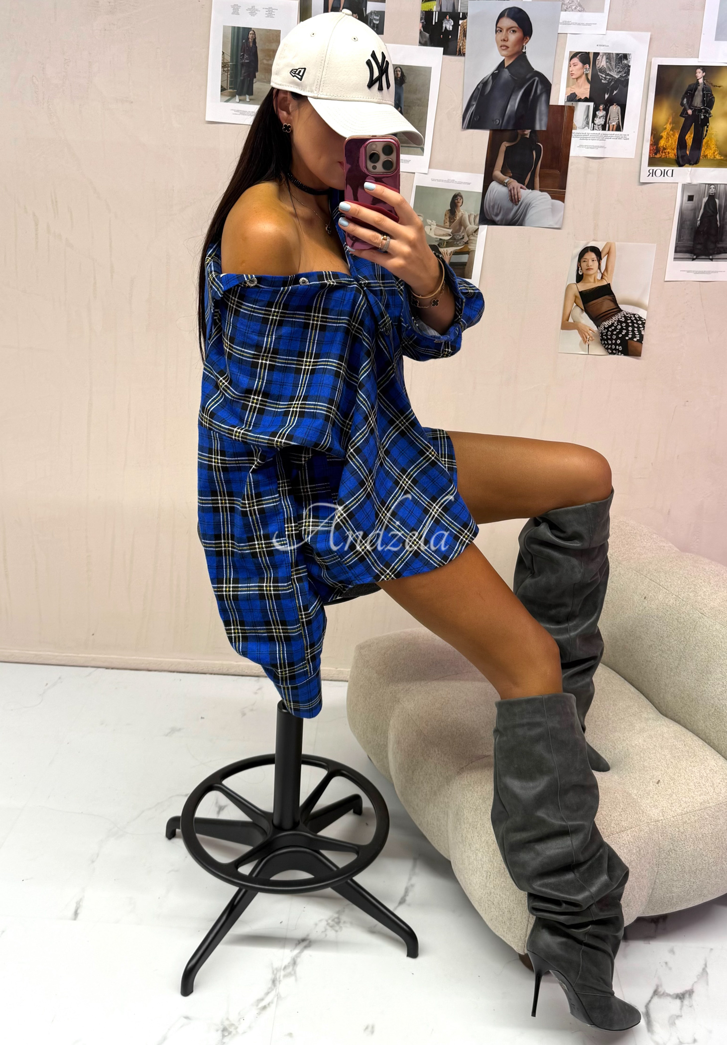 Cămașă cu cel mai trendy imprimeu al sezonului - carouri! Realizată din material de bumbac plăcut la atingere. Model oversize, prevăzut cu guler și închidere cu nasturi. Mâneci lungi, finisate cu manșete.