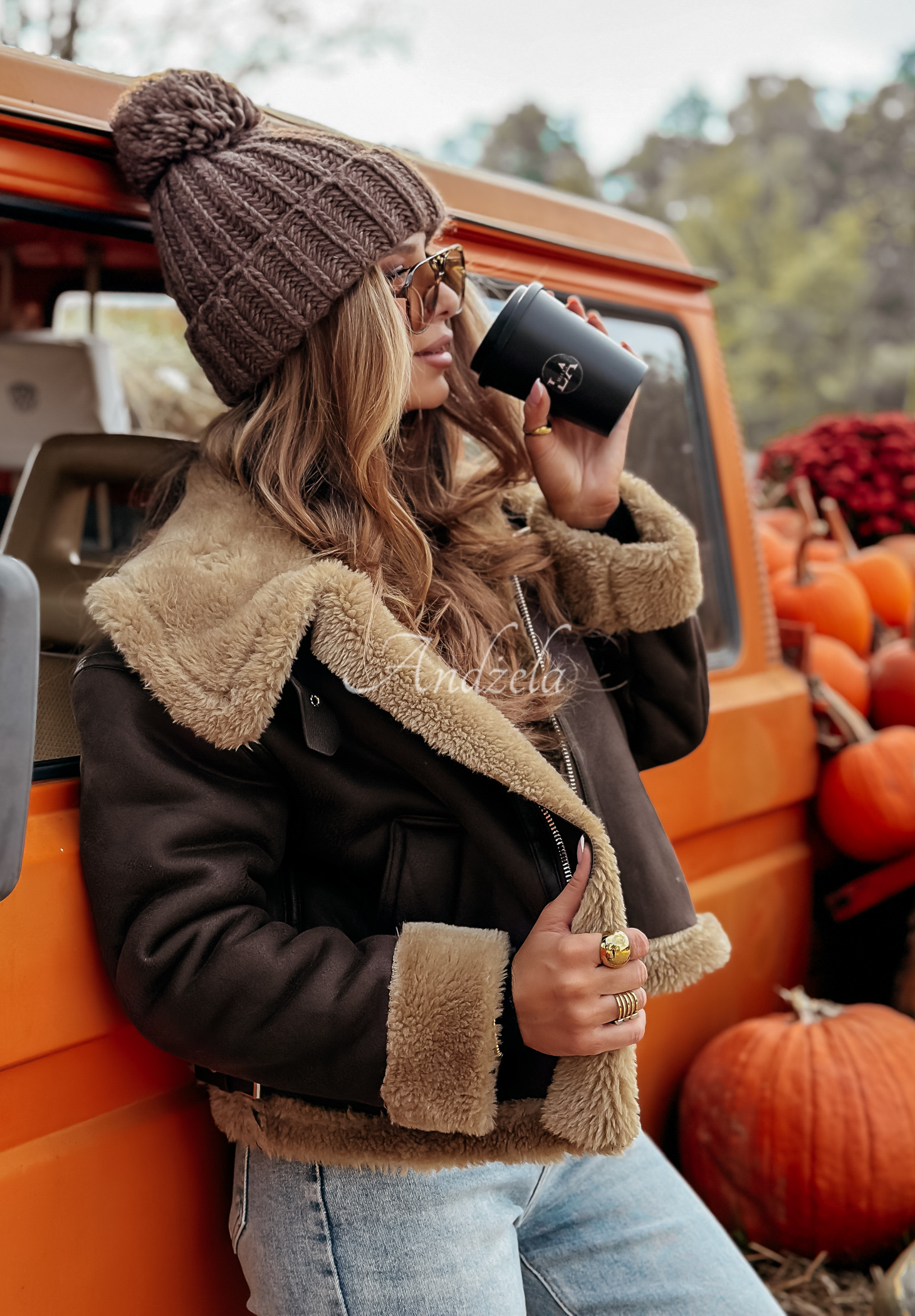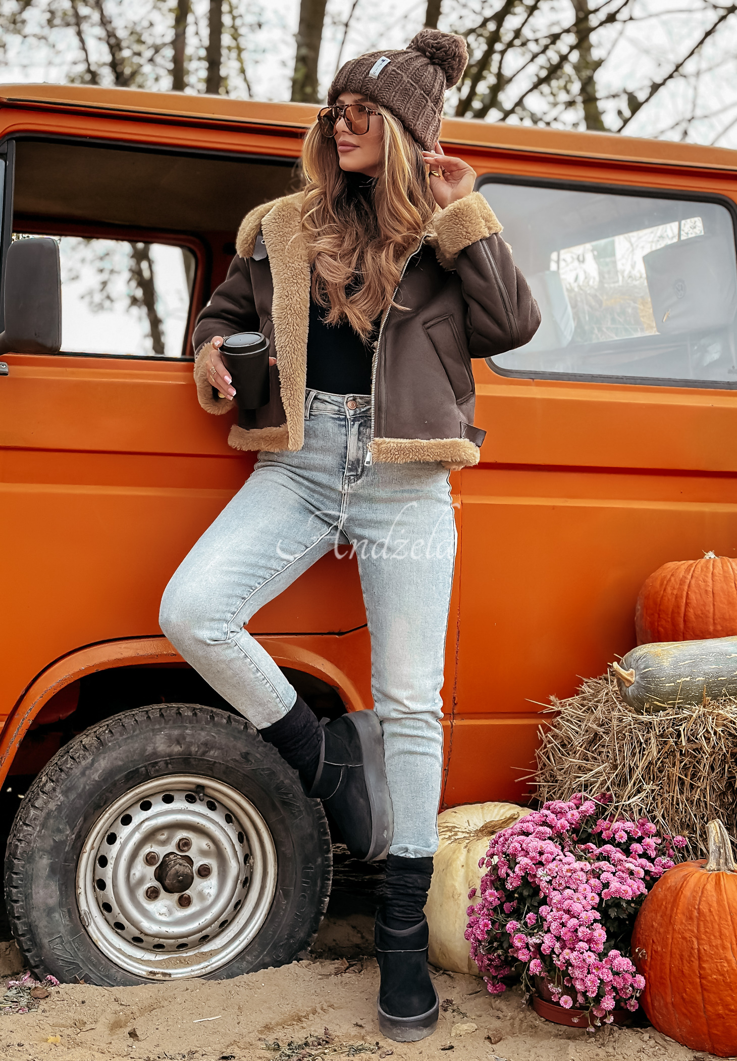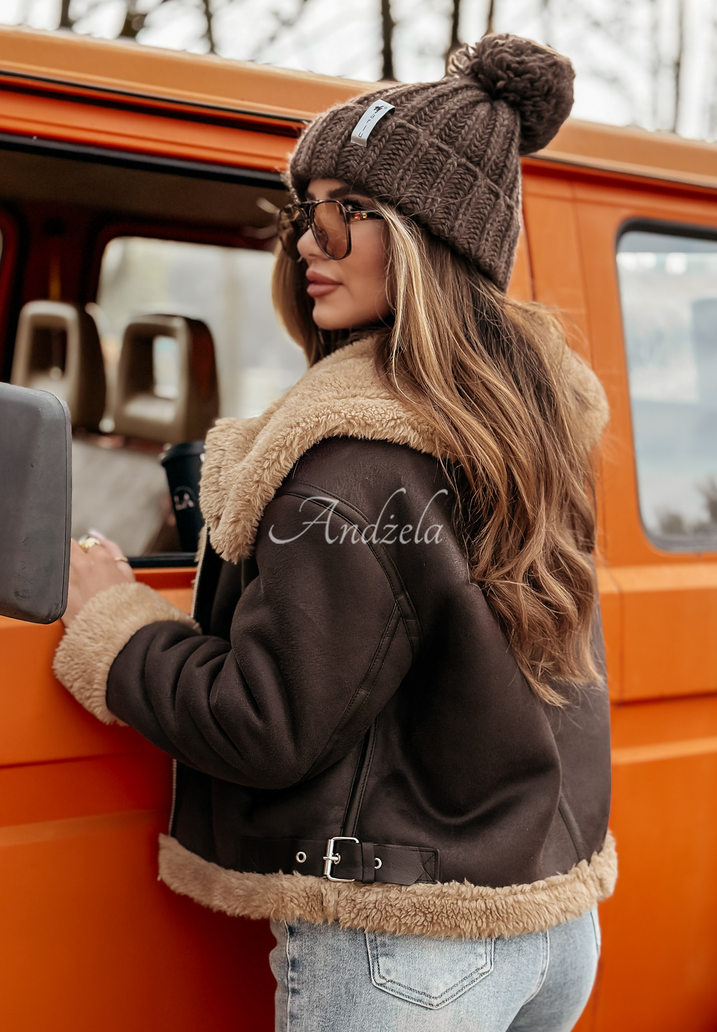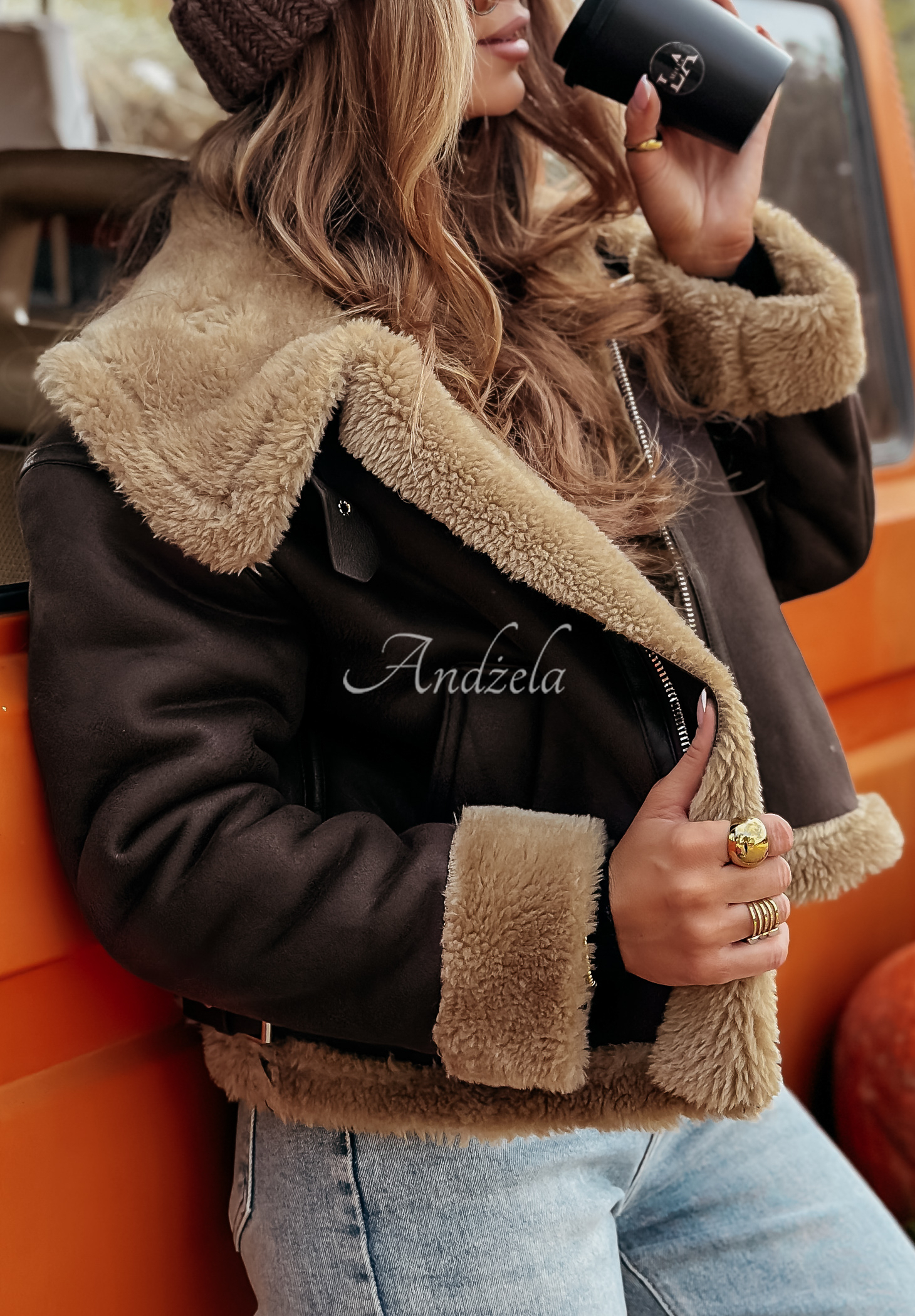 * accente de material din imitație de lână de miel