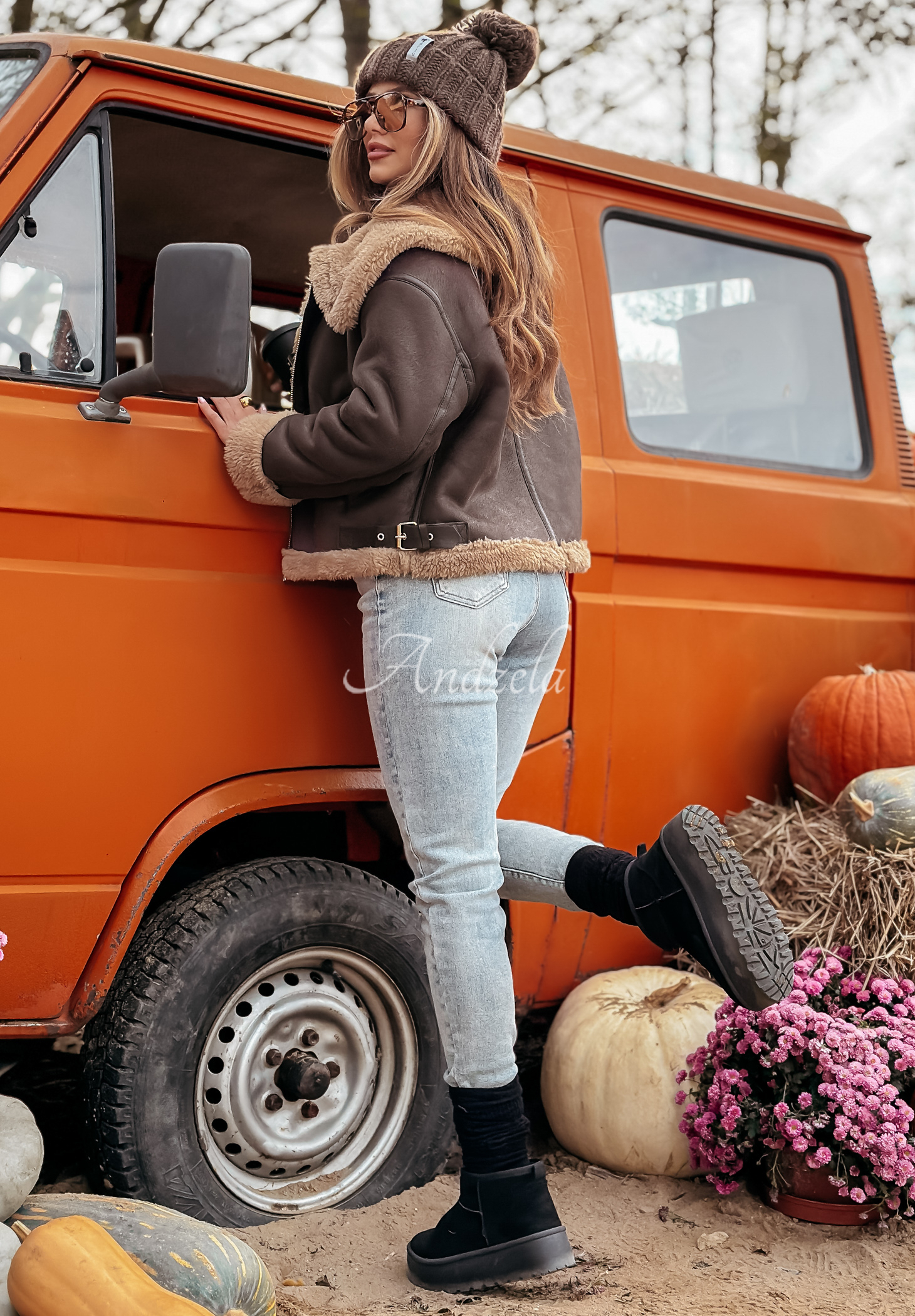 O geacă din piele întoarsă va arăta foarte bine ca o completare a look-ului tău în zilele mai reci. Este căptușită cu un material moale din imitație de lână de miel, cu accente și pe mânecile suflecate și pe guler. Este un model scurt cu fermoar și buzunare funcționale. Pe laterale sunt curelușe reglabile, iar modelul este completat de detalii argintii.