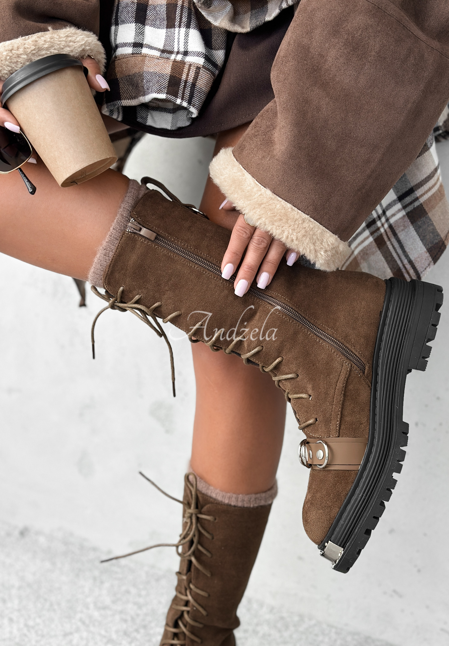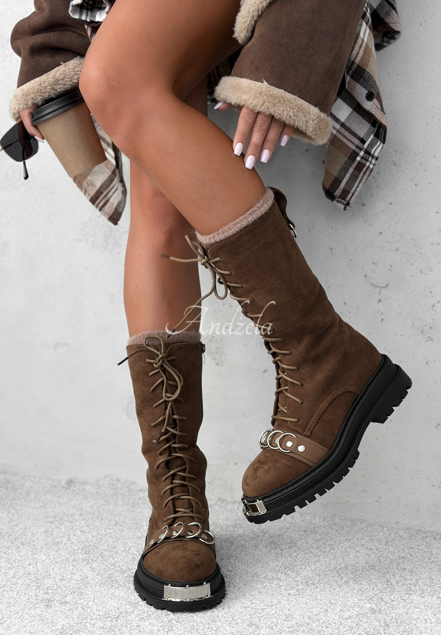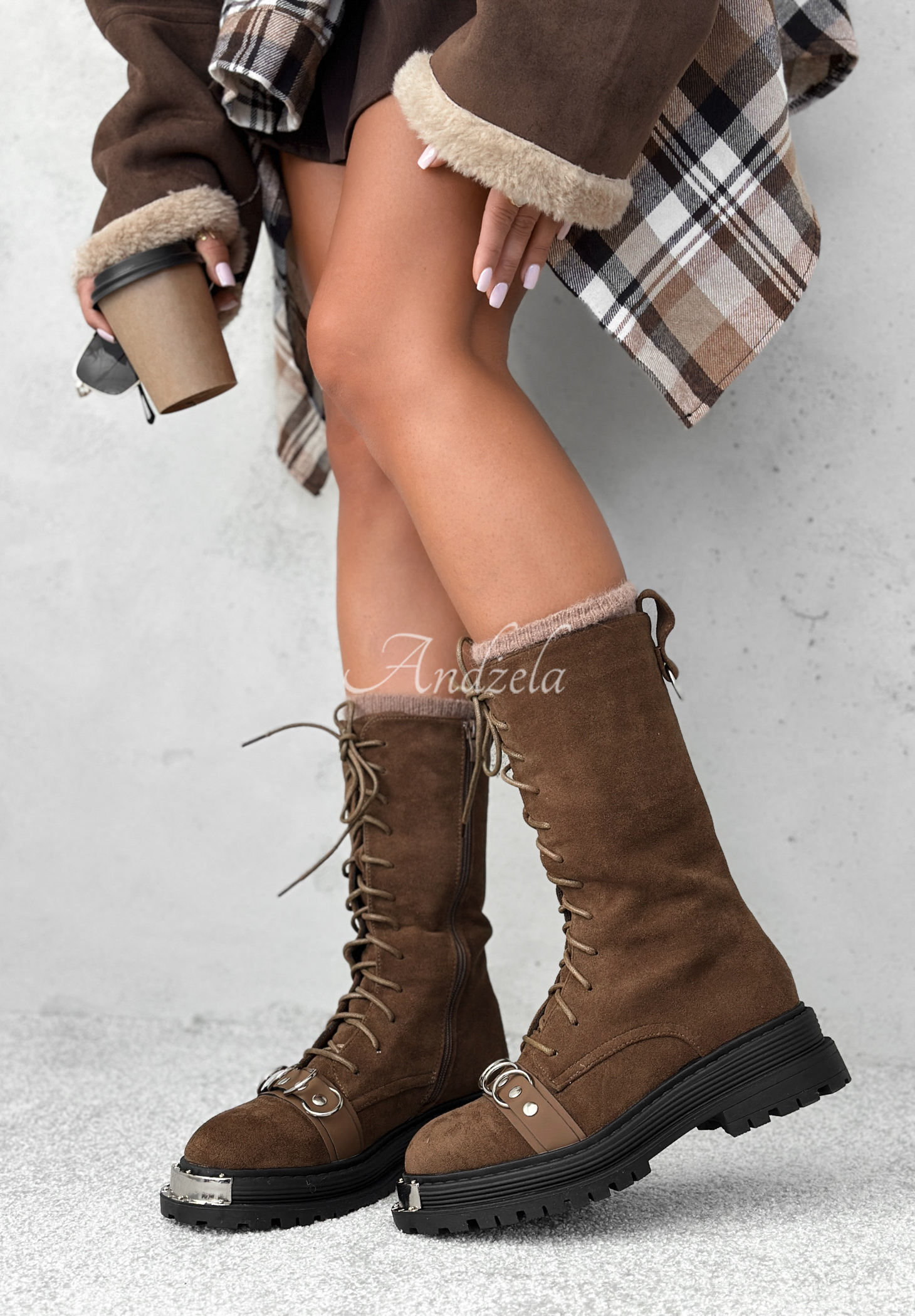 Botine cu șireturi, confecționate din imitație de piele întoarsă. Încălțăminte ușor căptușită, prevăzută cu fermoar pe partea interioară. Se remarcă prin detalii decorative argintii și vârful rotunjit.