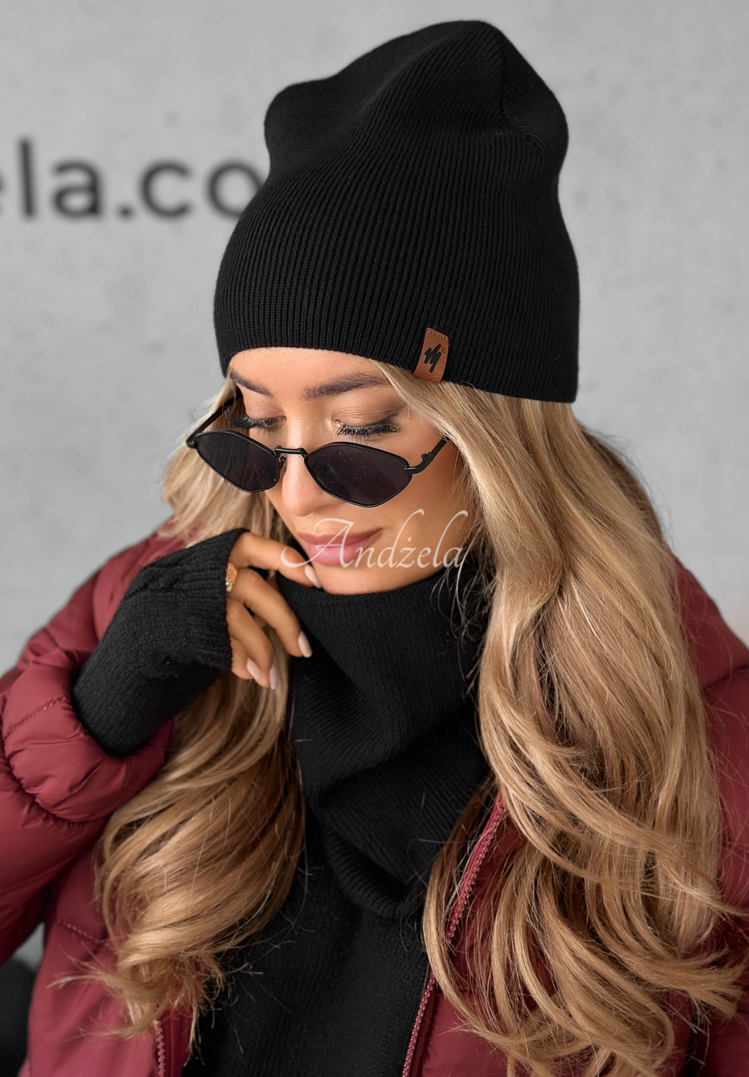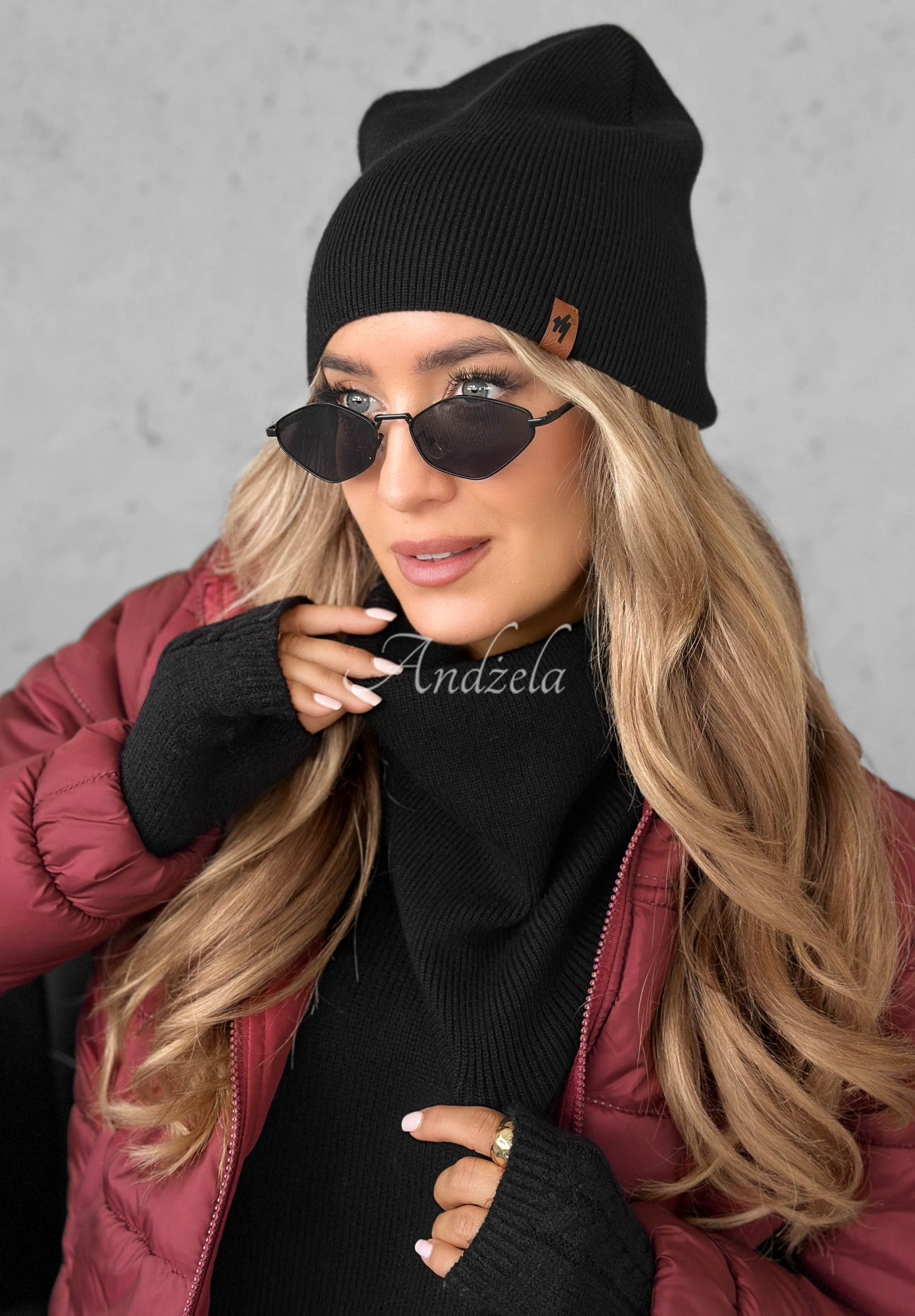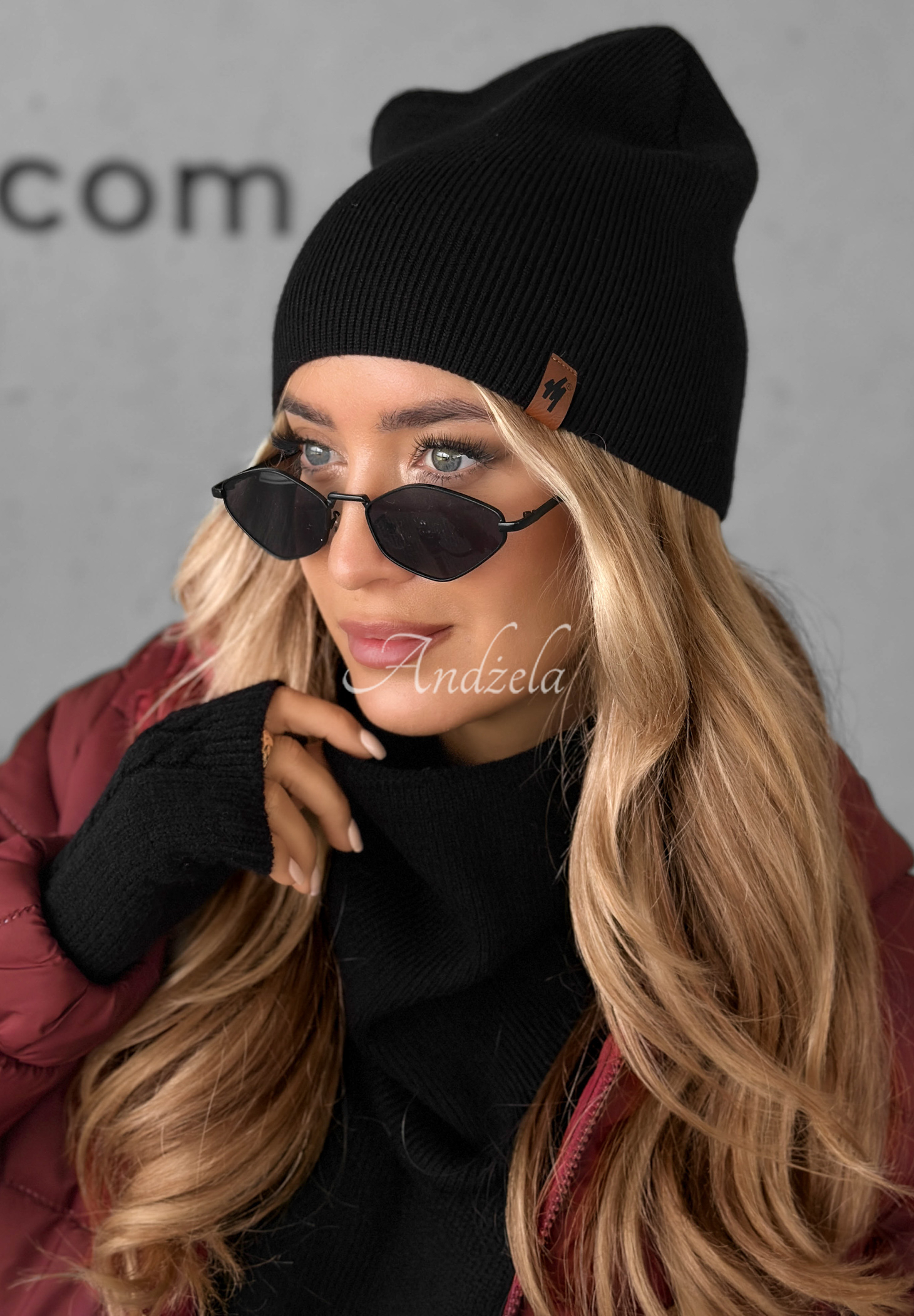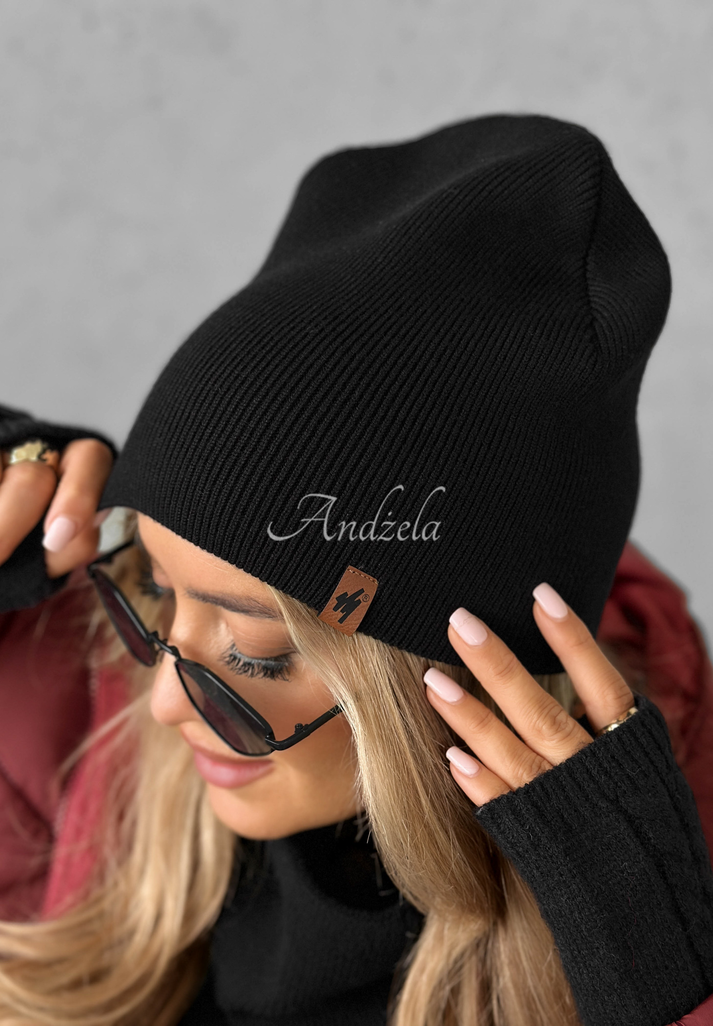 Căciulă moale, confecționată din material elastic cu adaos de viscoză. Este un model cu striații, de tip beanie, cu o mică aplicație în față. Se potrivește perfect cu eșarfa tip guler Enjoying Autumn.