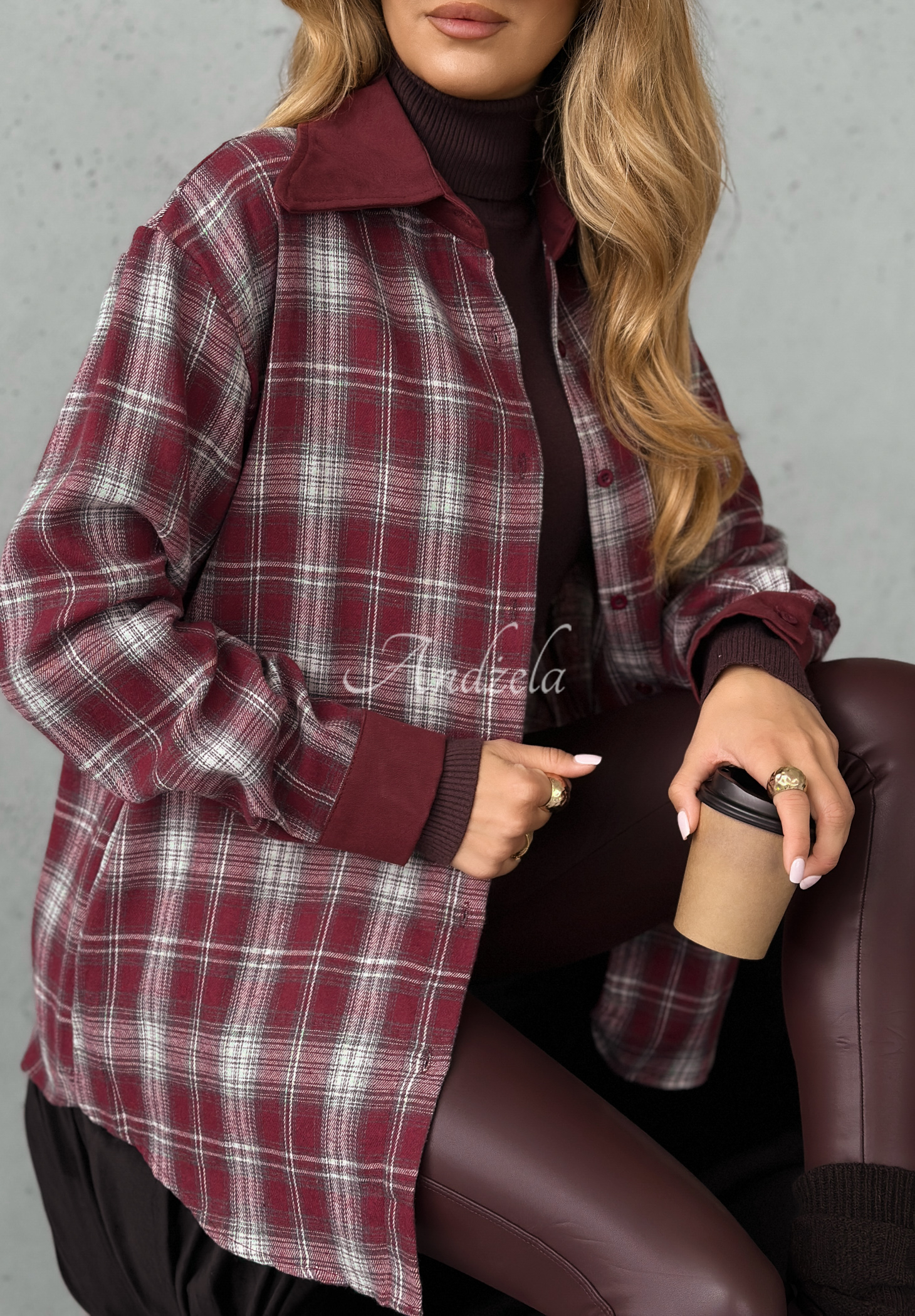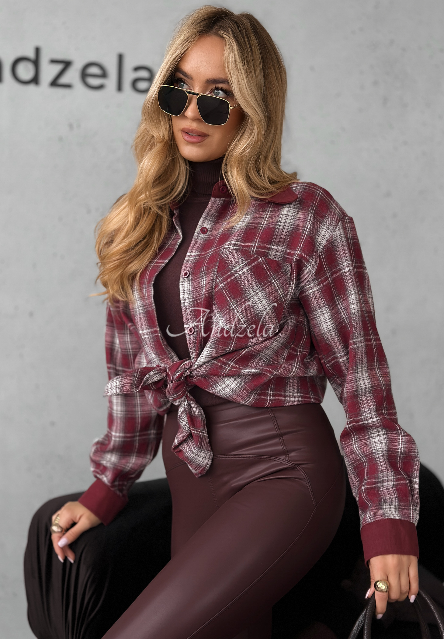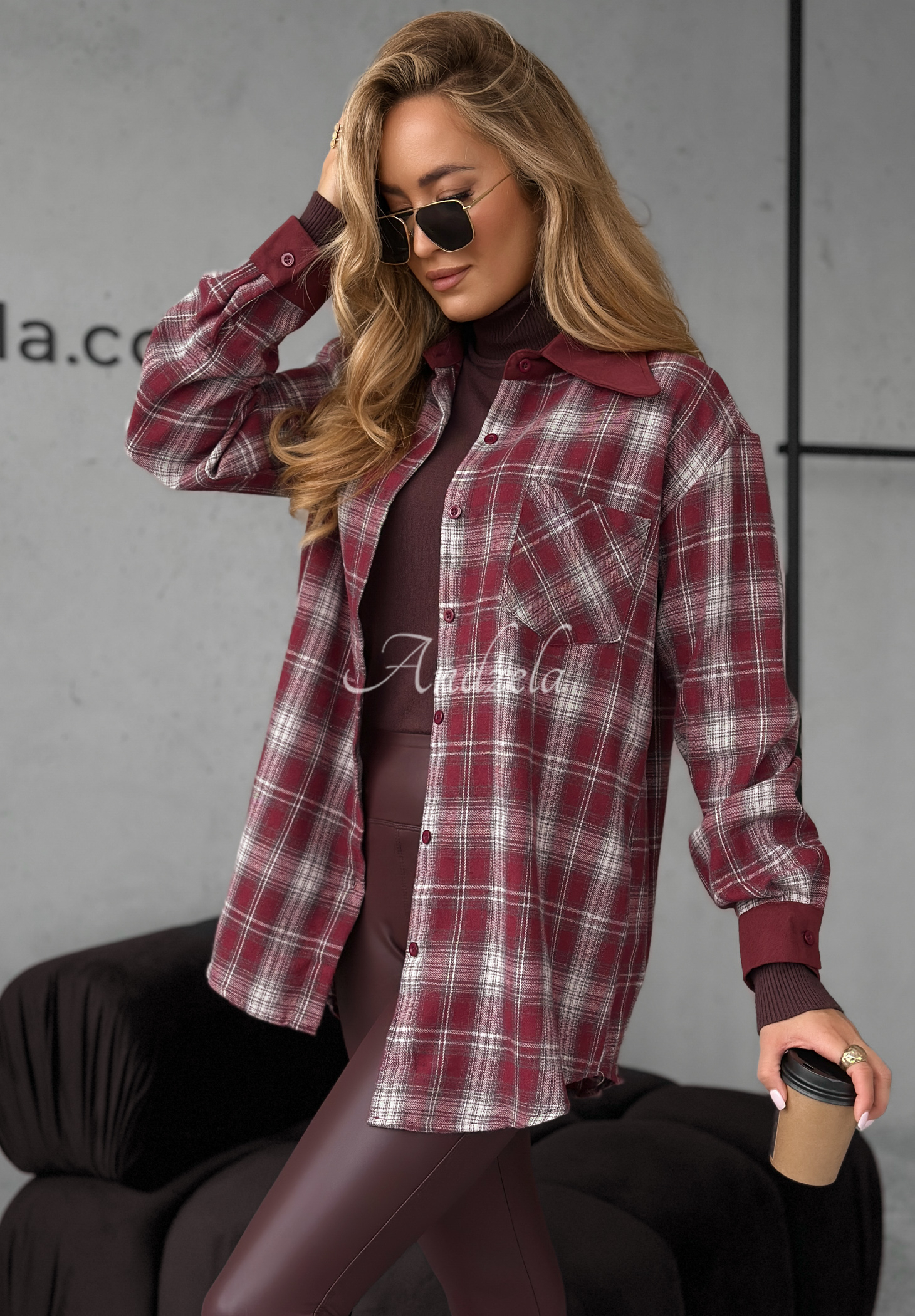 Cămașă cu carouri, confecționată din bumbac moale, neelastic. Model cu croială clasică, guler și închidere cu nasturi. În față are un buzunar, iar mânecile lungi sunt terminate cu manșete.