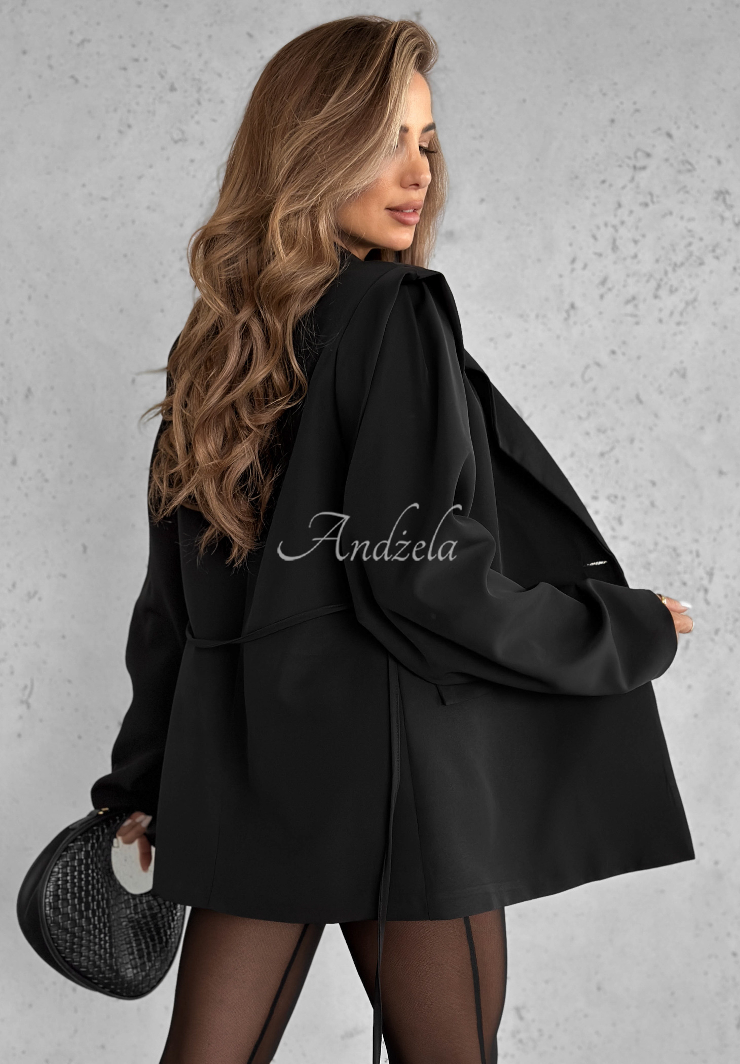 Sacou cu guler și legare în talie. Este o propunere ale cărei atuuri sunt pernițele la umeri care oferă formă și mânecile largi. Se închide cu un singur nasture și are imitații de buzunare. Dedesubt se află o căptușeală.