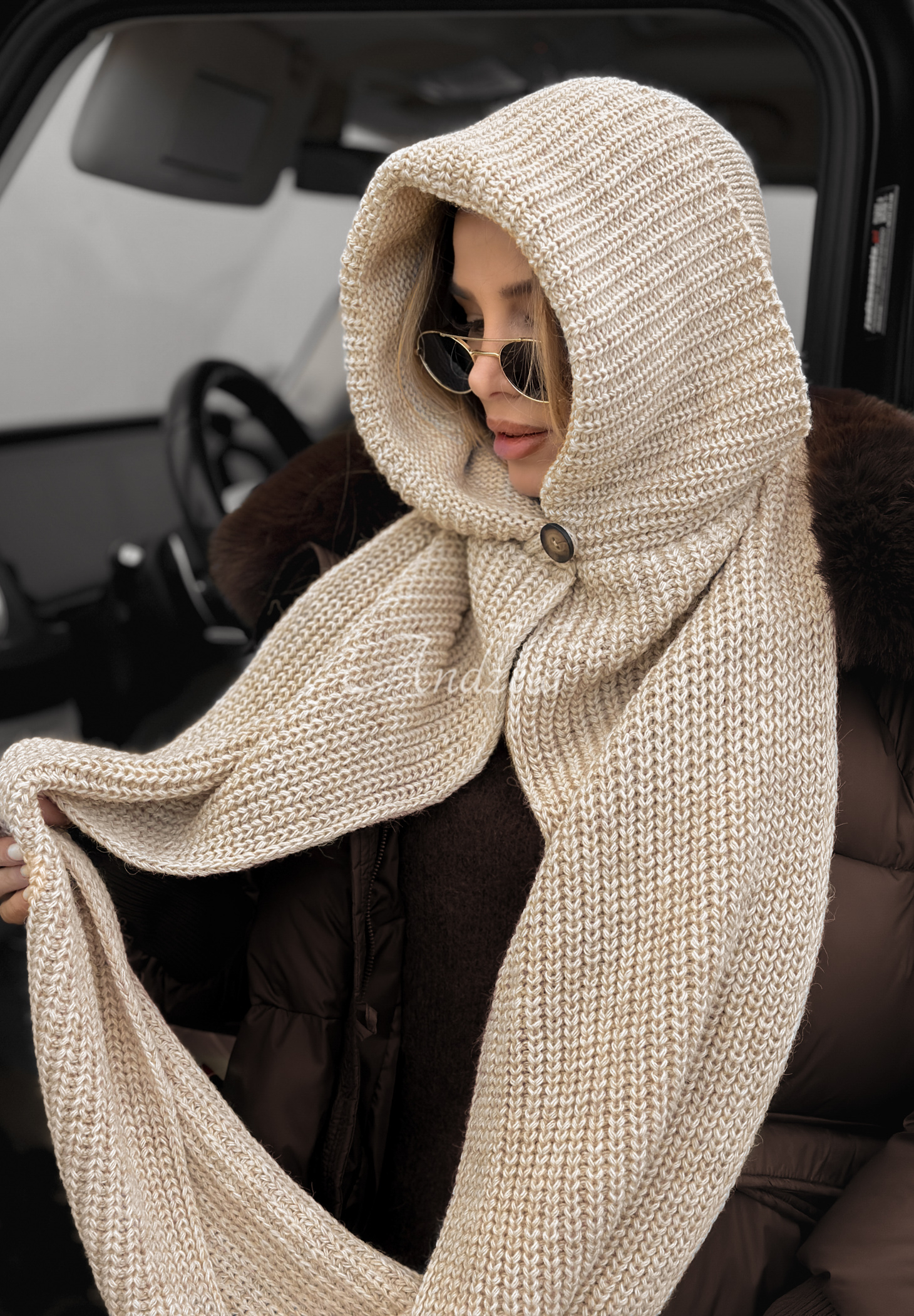 Balaclava este un accesoriu modern 2in1, care combină o eșarfă cu o glugă. Modelul are închidere cu un singur nasture în partea superioară, oferind o fixare stabilă și căldură. Confecționată din tricot moale, completează perfect ținutele de toamnă-iarnă!