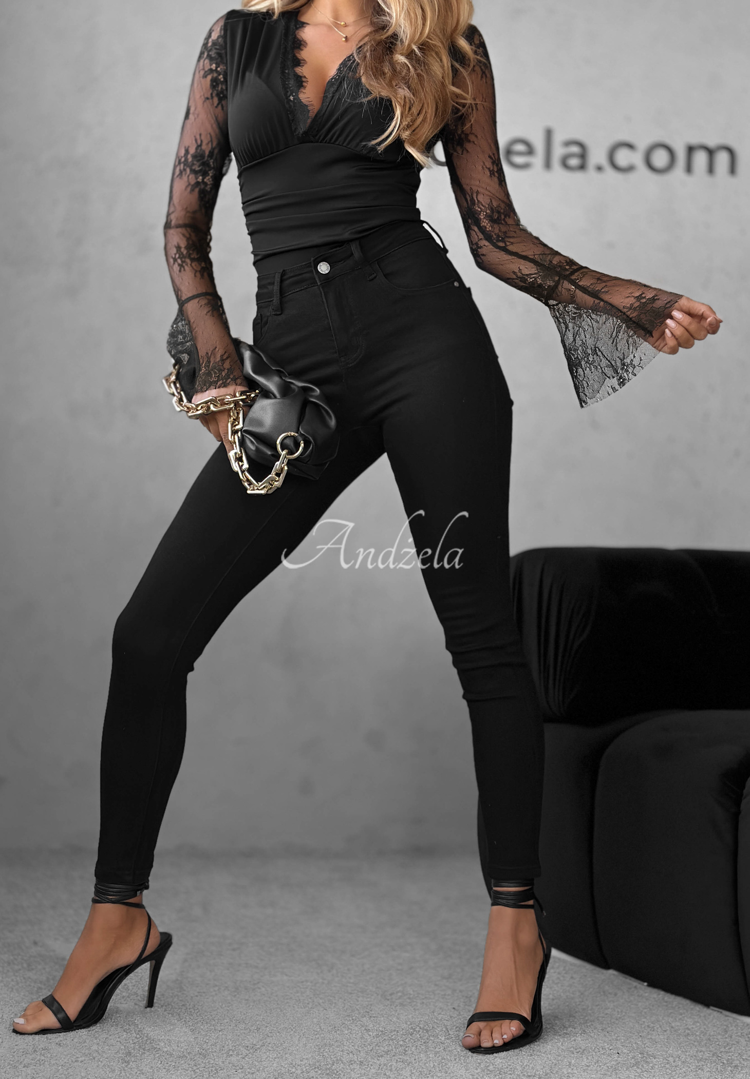 Blugi cu talie înaltă, un model clasic cu croială mulată. Confecționați din material elastic pe bază de bumbac. Se închid cu fermoar și nasture, având buzunare funcționale atât în față, cât și la spate.