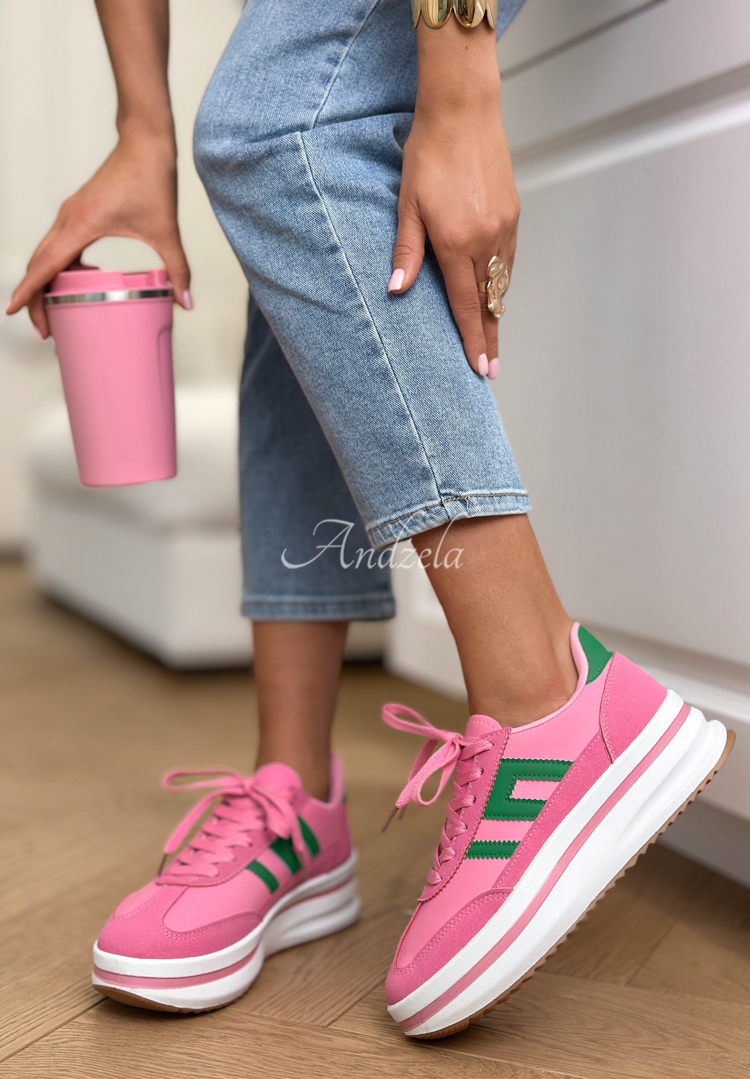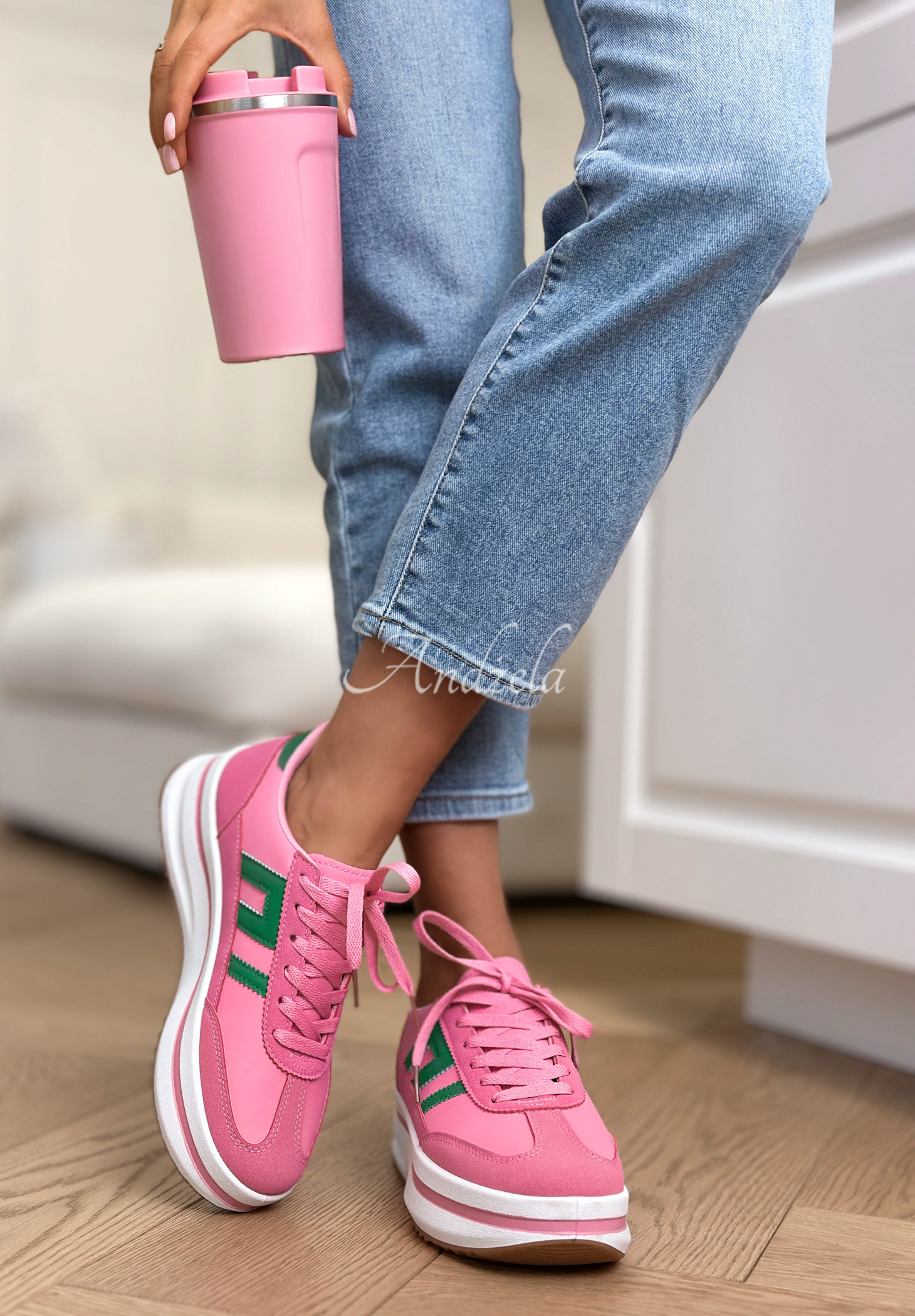 Adidași confortabili, care ar trebui să se regăsească în orice garderobă feminină. Sunt realizați din material tip piele întoarsă, cu inserții din imitație de piele. Model cu șireturi, cu partea superioară sub gleznă și vârf rotunjit. Așezați pe o talpă ușor înălțată.