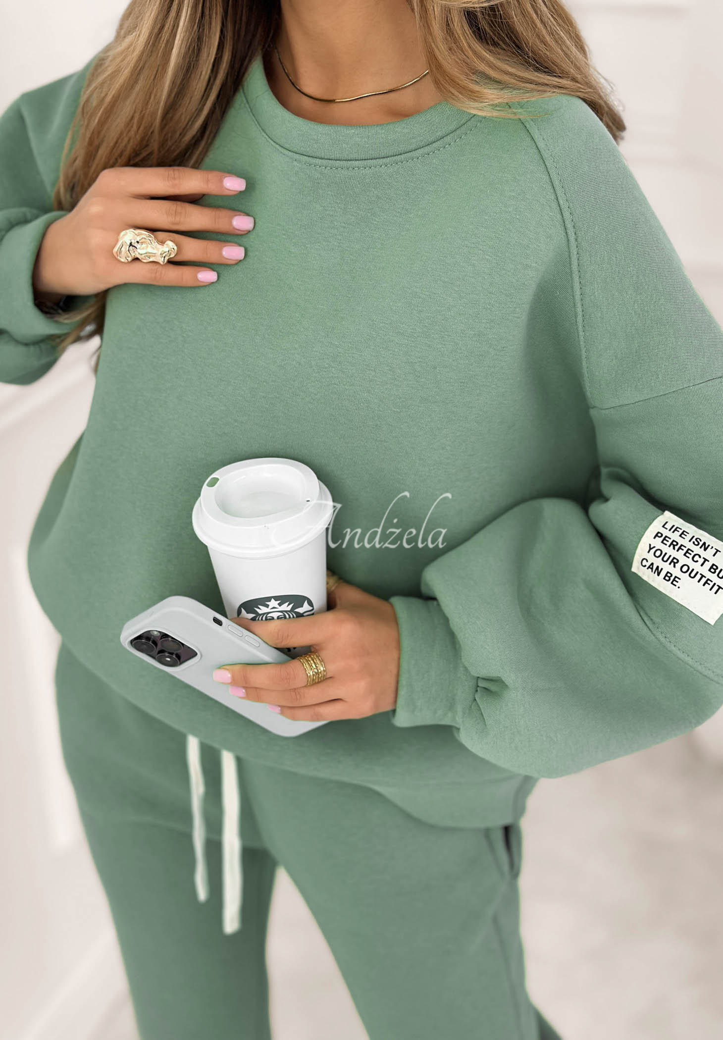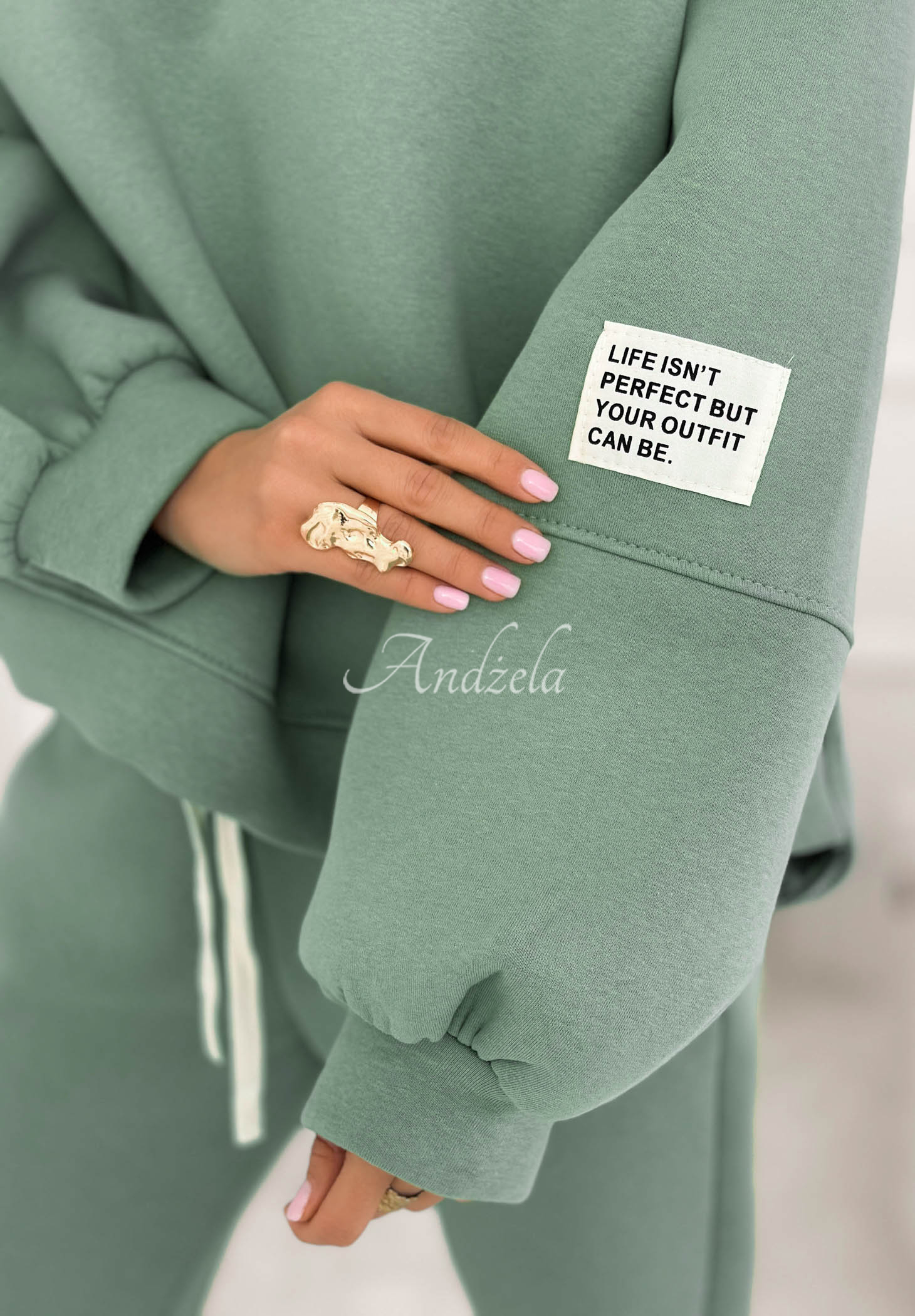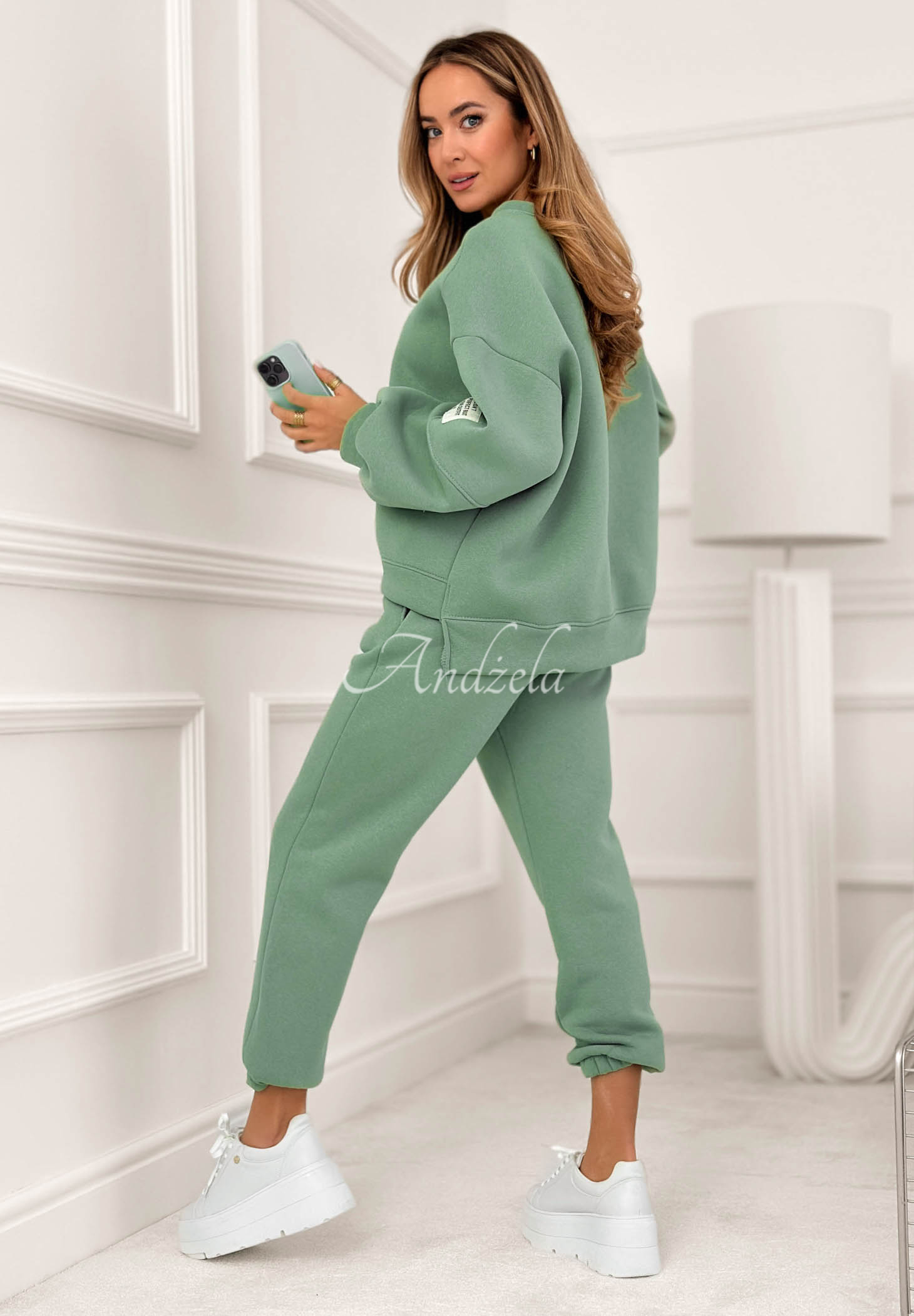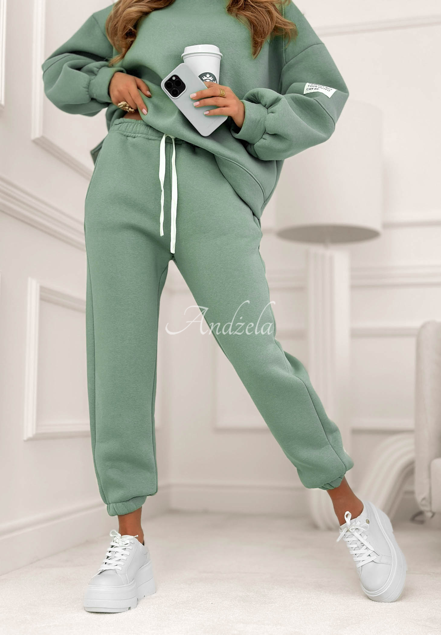 Set de trening căptușit, realizat din material din bumbac. Hanoracul cu decolteu rotunjit se remarcă prin aplicația de pe mânecă. Pantalonii cu talie înaltă au elastic în talie și manșete la terminația cracilor.