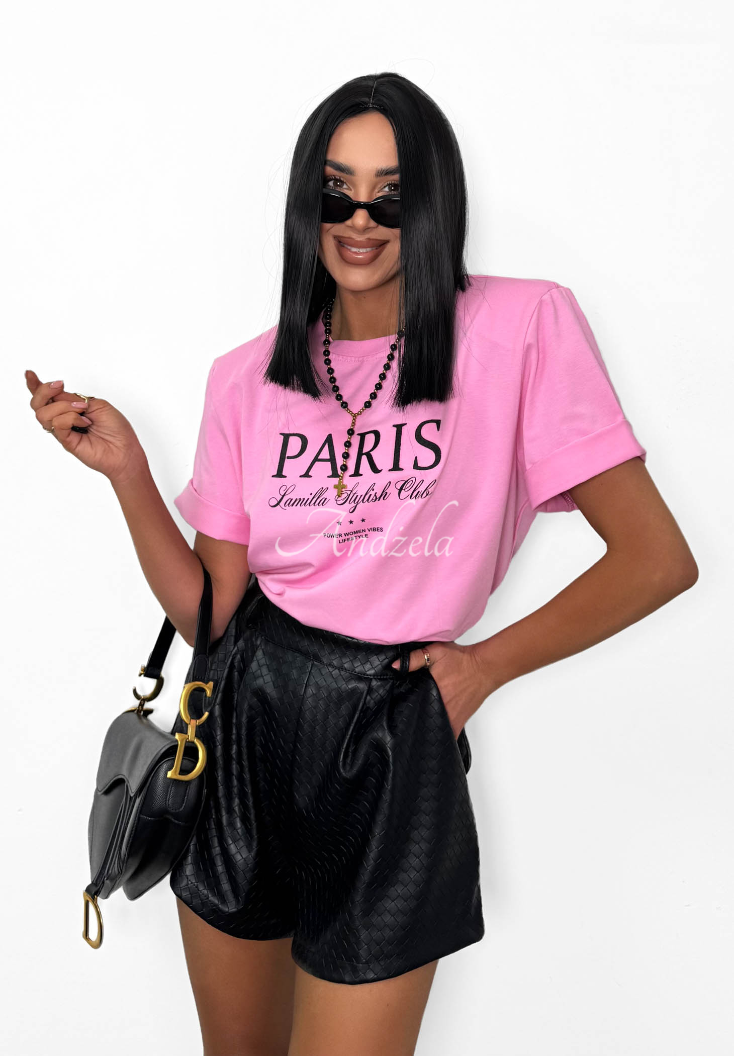 Tricou cu imprimeu, confecționat din material elastic din viscoză de înaltă calitate. Pe umeri se află pernițe care oferă formă. Este un model cu decolteu rotunjit și mâneci scurte.