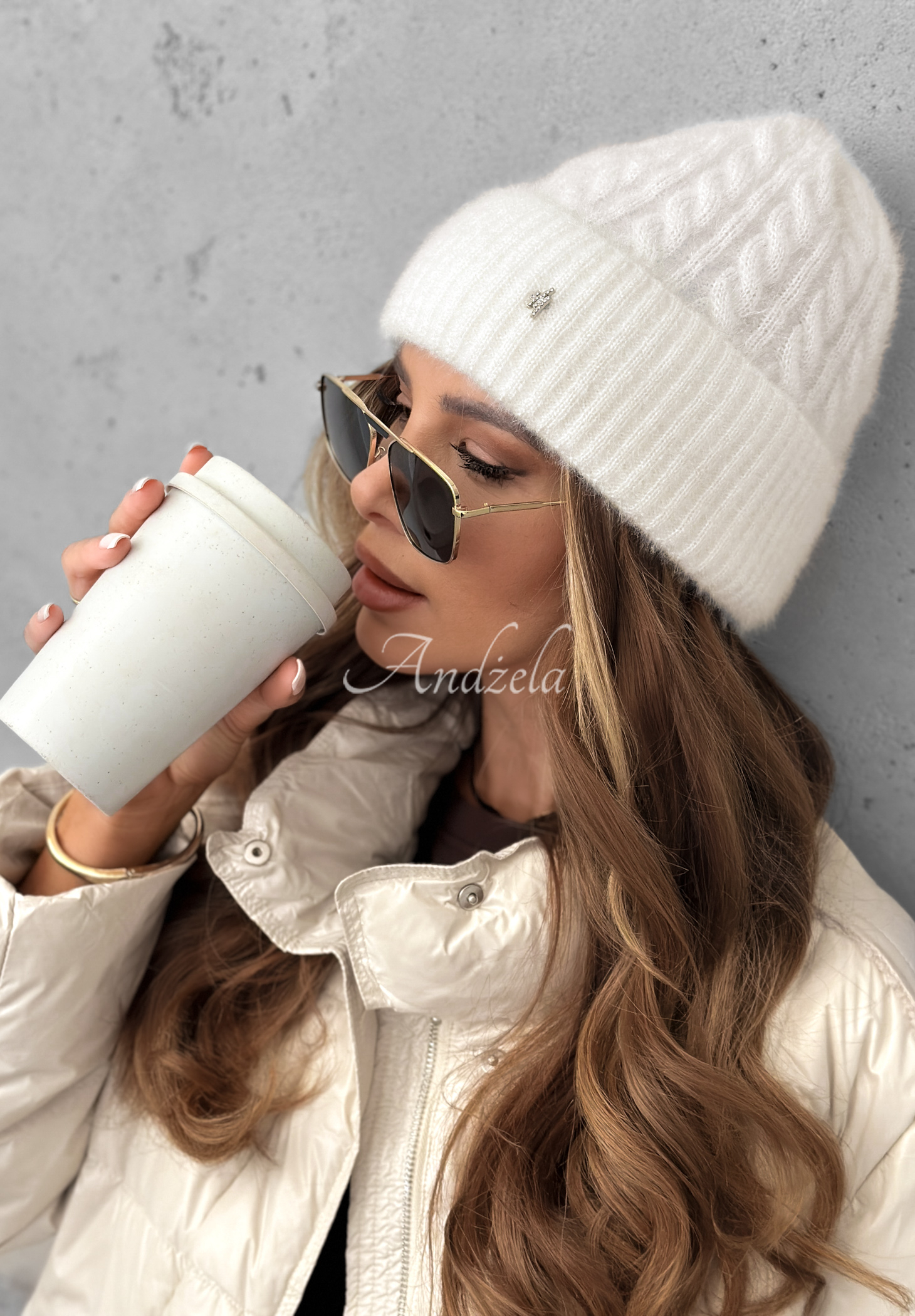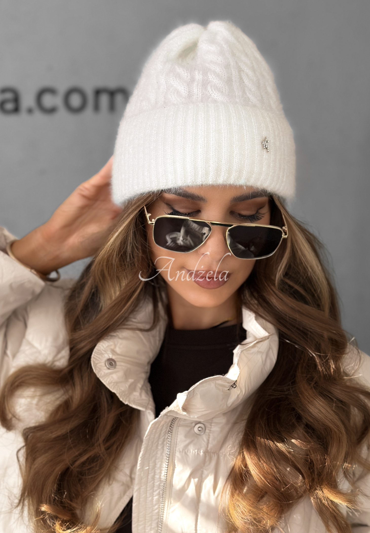 Căciulă confecționată din material plăcut la atingere. O propunere minimalistă, evidențiată printr-un detaliu argintiu subtil în partea din față și margine îndoită în partea de jos.