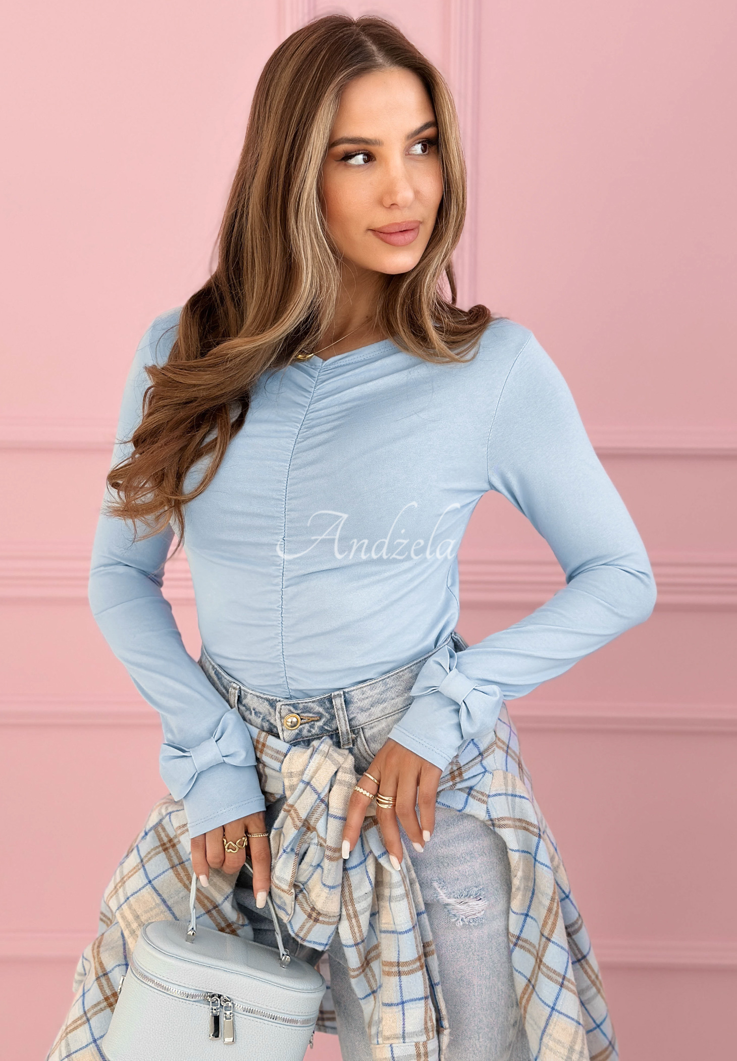 [title] => Elastyczna bawełniana bluzka 𝐂𝐮𝐭𝐢𝐞 𝐁𝐨𝐰𝐬 🎀 Marszczenia i kokardki na rękawach!