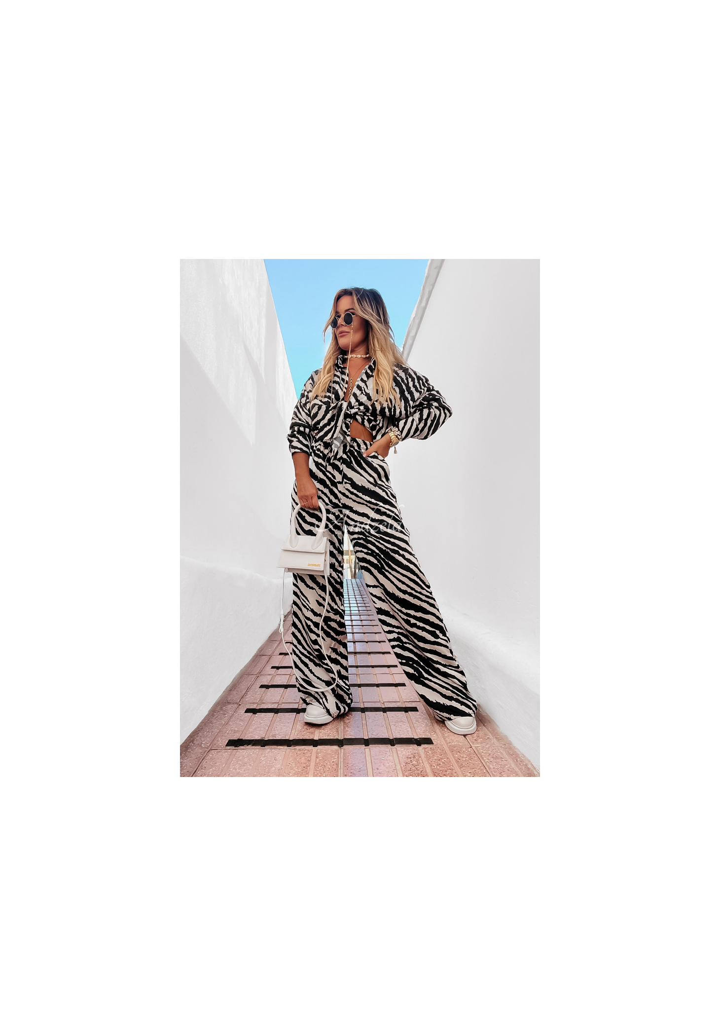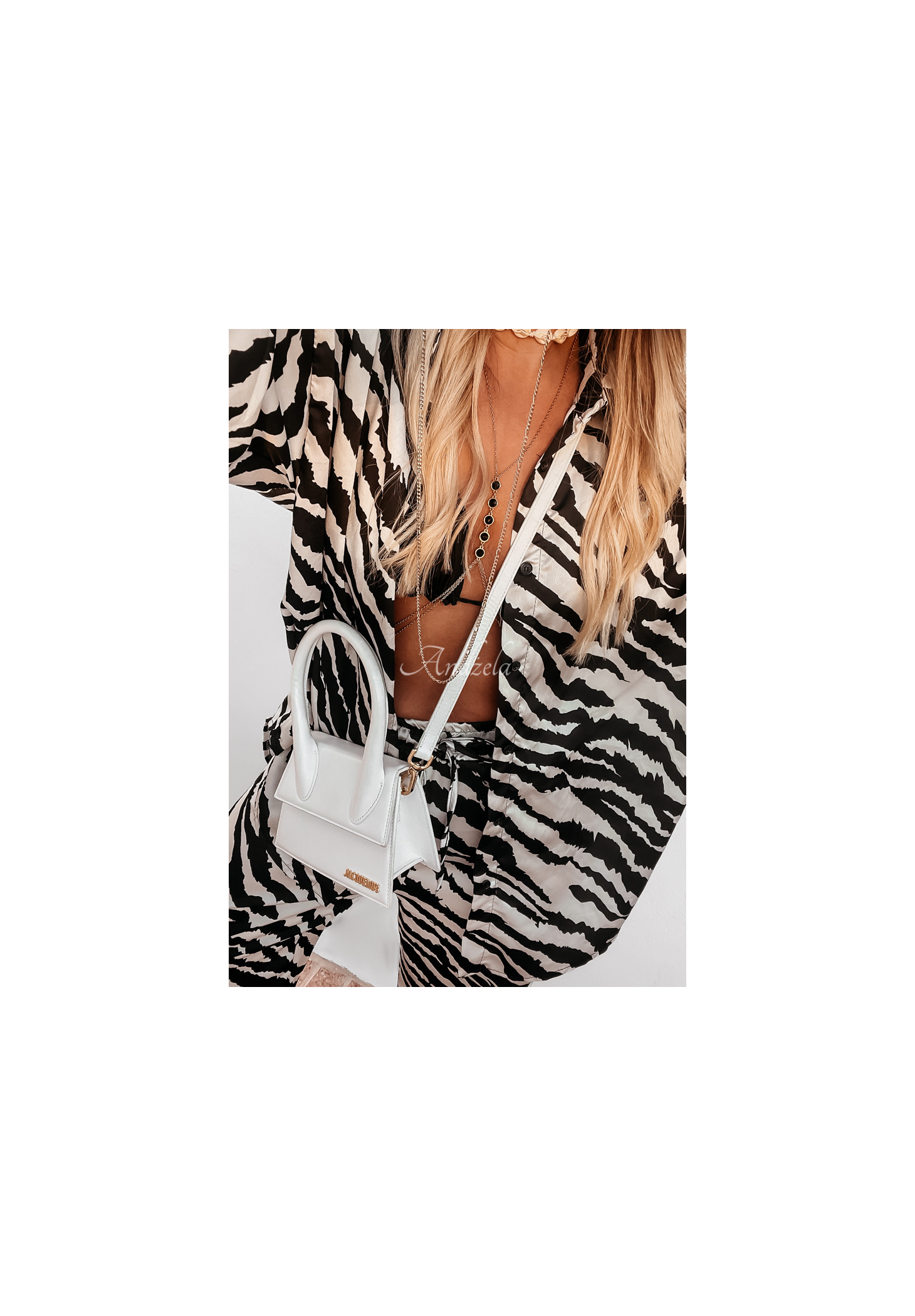 Modelul are înălțimea de 164 cm și poartă mărimea 38/M.