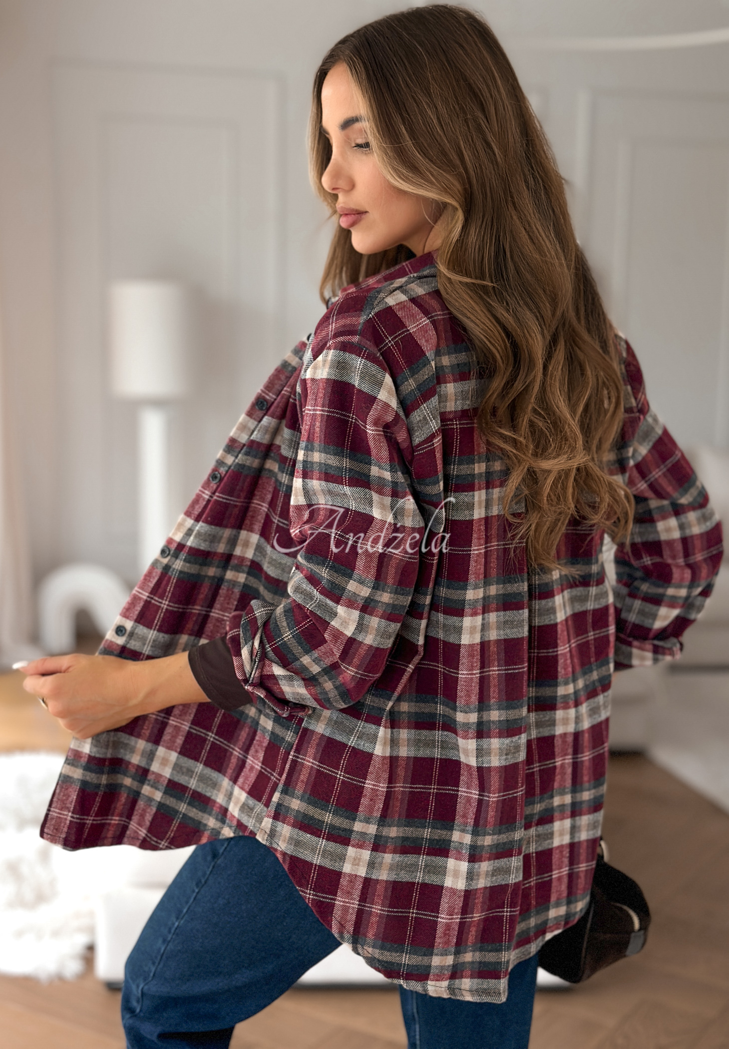 Cămașă în cel mai trendy print al sezonului - carouri! Realizată din bumbac plăcut la atingere. Este un model oversize, prevăzut cu guler și închidere cu nasturi. Mânecele lungi sunt finisate cu manșete.