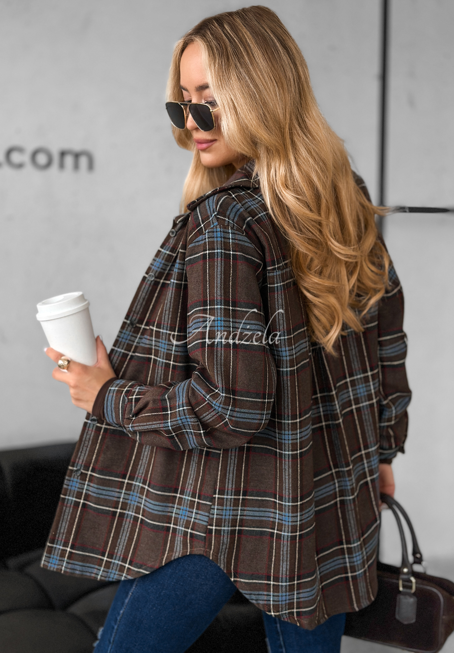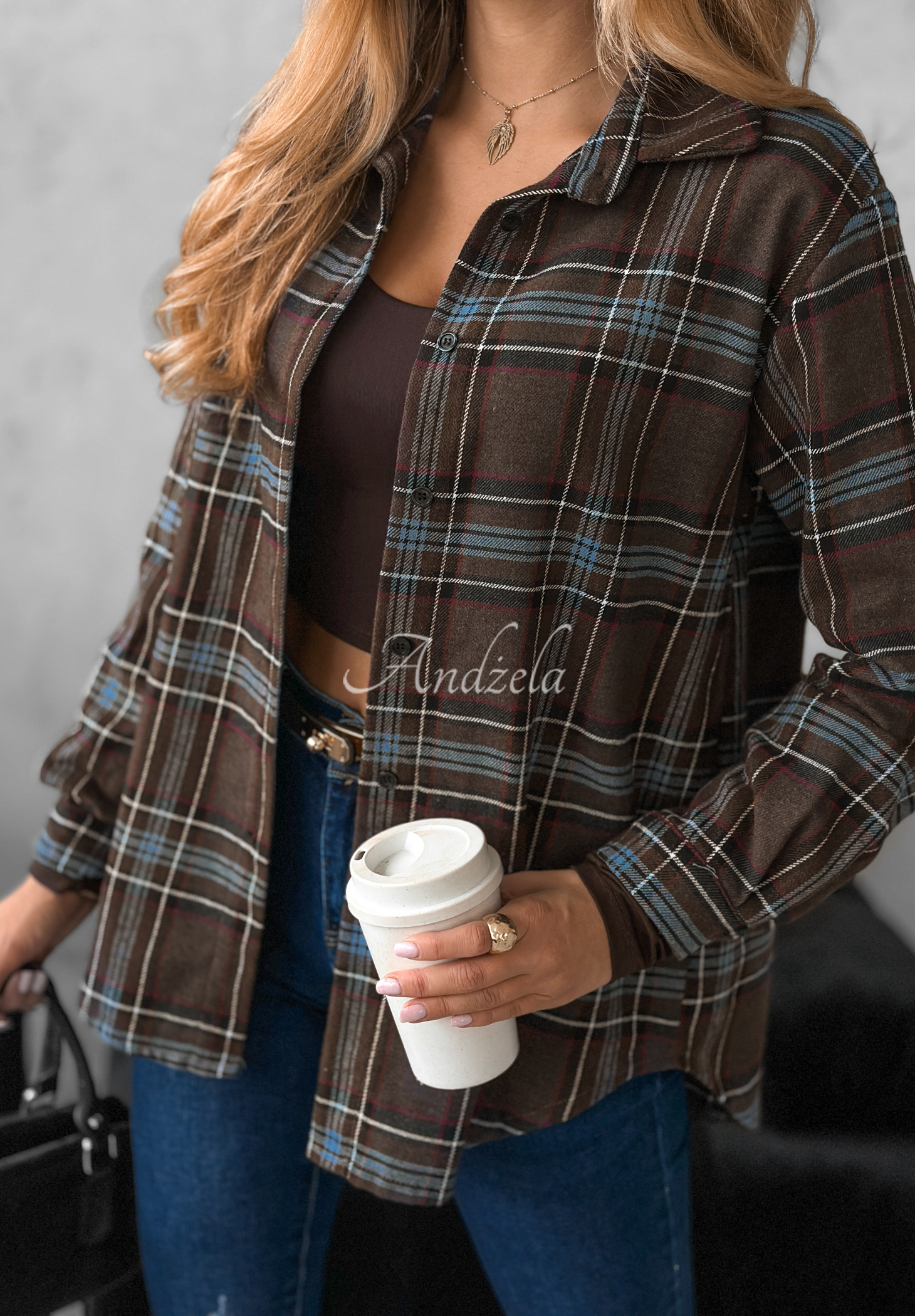 Cămașă în cel mai trendy print al sezonului - carouri! Realizată din bumbac plăcut la atingere. Este un model oversize, prevăzut cu guler și închidere cu nasturi. Mânecele lungi sunt finisate cu manșete.