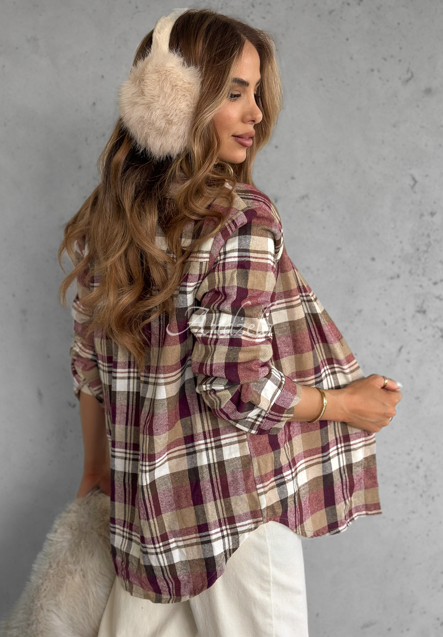 Cămașă în cel mai trendy print al sezonului - carouri! Realizată din bumbac plăcut la atingere. Este un model oversize, prevăzut cu guler și închidere cu nasturi. Mânecele lungi sunt finisate cu manșete.