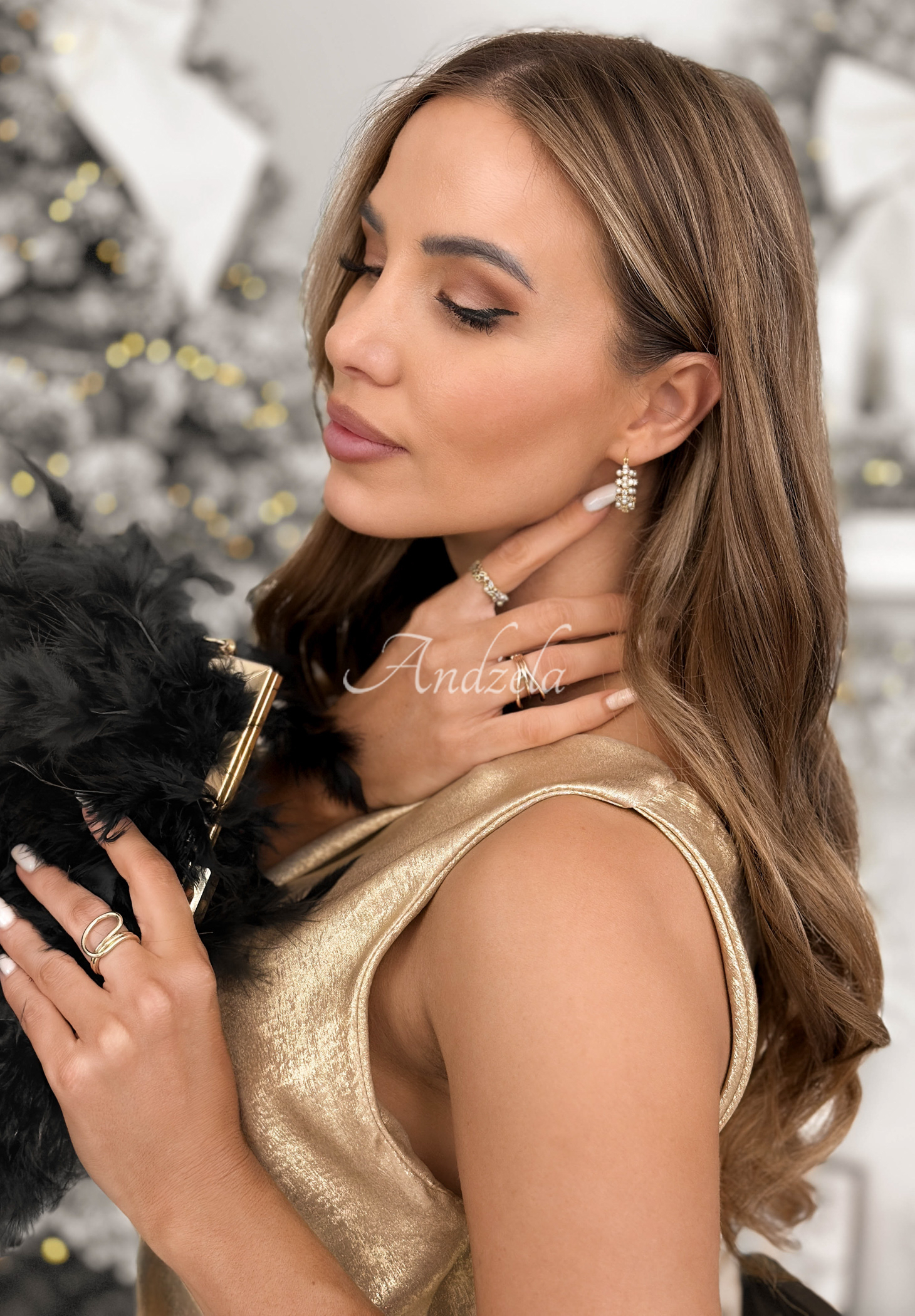 Cercei cu perluțe și cristale strălucitoare este o propunere elegantă, care adaugă rafinament oricărei ținute. Este un model deosebit, realizat din oțel inoxidabil de înaltă calitate, cu finisaj auriu. Au închidere tip tortiță.