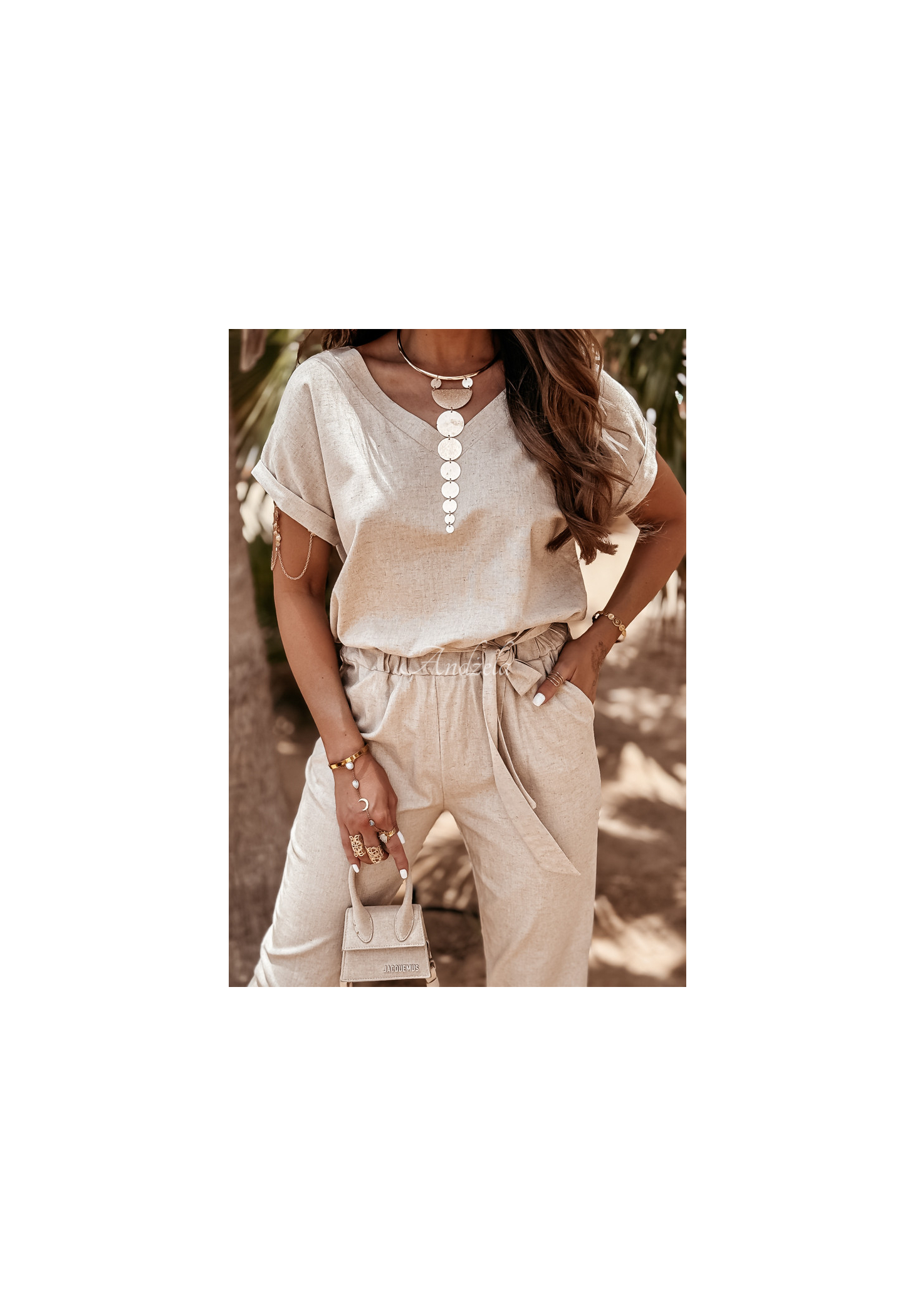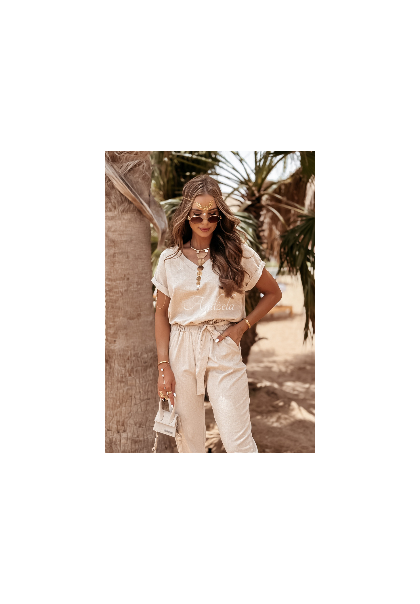 Compleu din in Summer In Us format din tricou și pantaloni bej