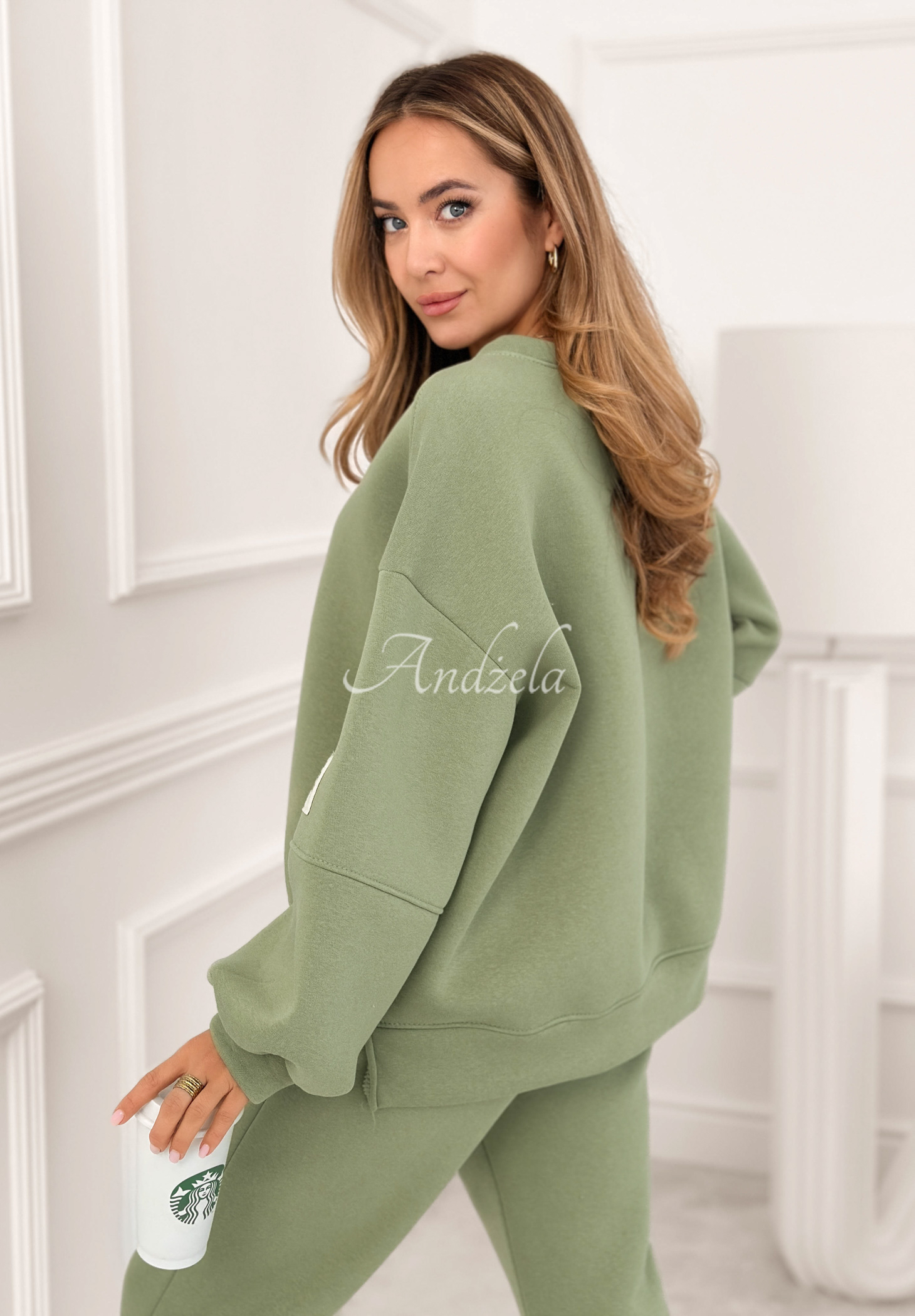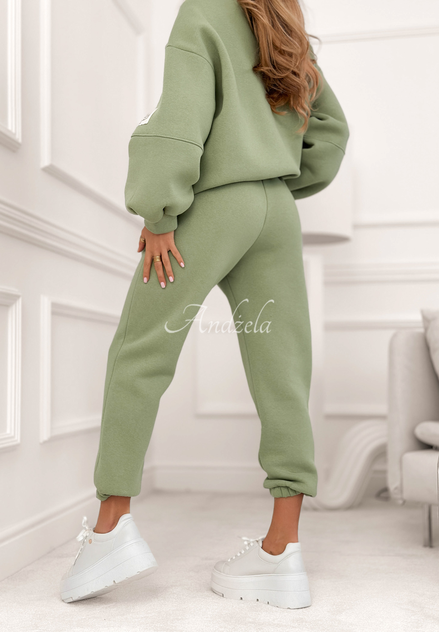 Set de trening căptușit, realizat din material din bumbac. Hanoracul cu decolteu rotunjit se remarcă prin aplicația de pe mânecă. Pantalonii cu talie înaltă au elastic în talie și manșete la terminația cracilor.