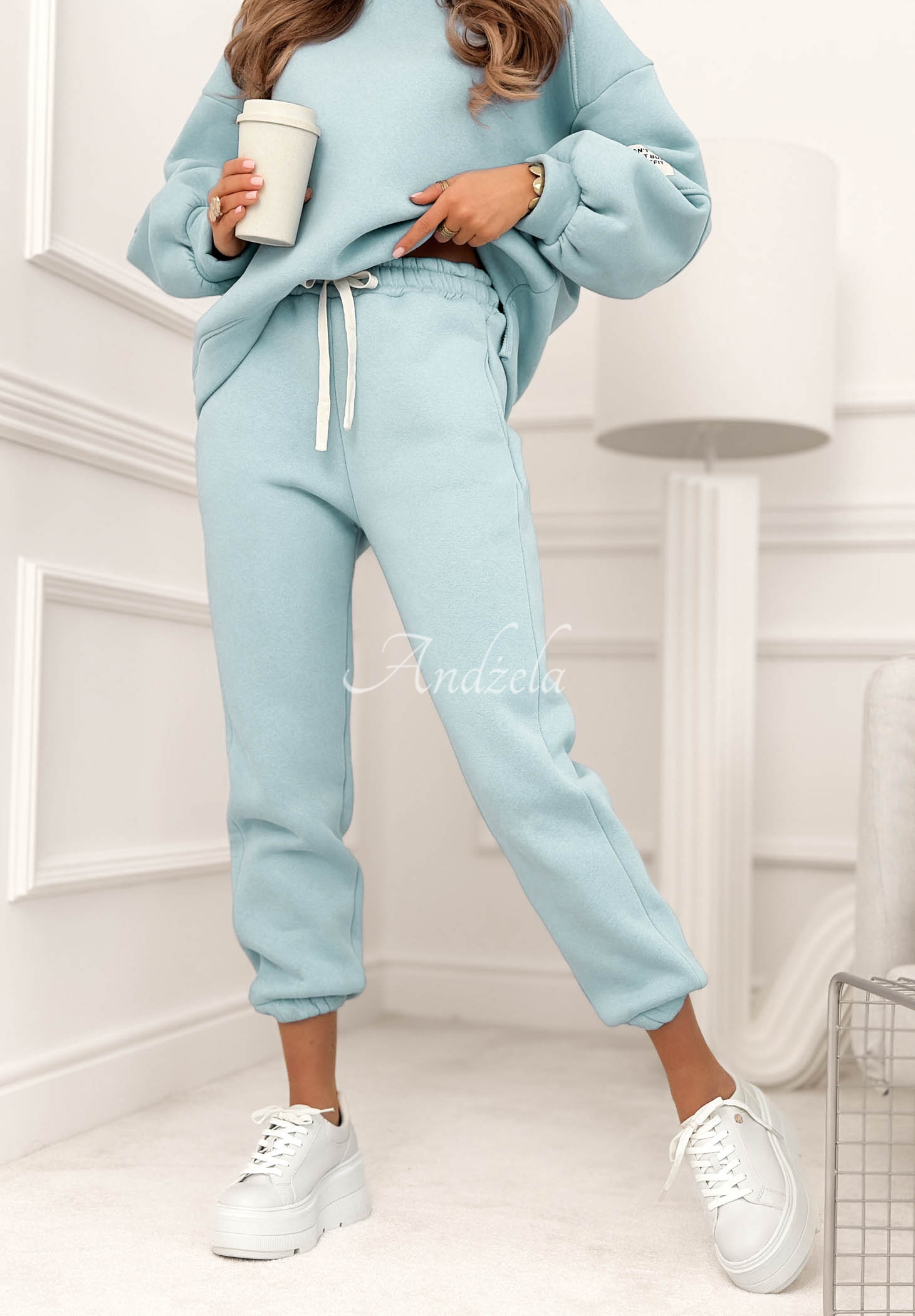 Set de trening căptușit, realizat din material din bumbac. Hanoracul cu decolteu rotunjit se remarcă prin aplicația de pe mânecă. Pantalonii cu talie înaltă au elastic în talie și manșete la terminația cracilor.