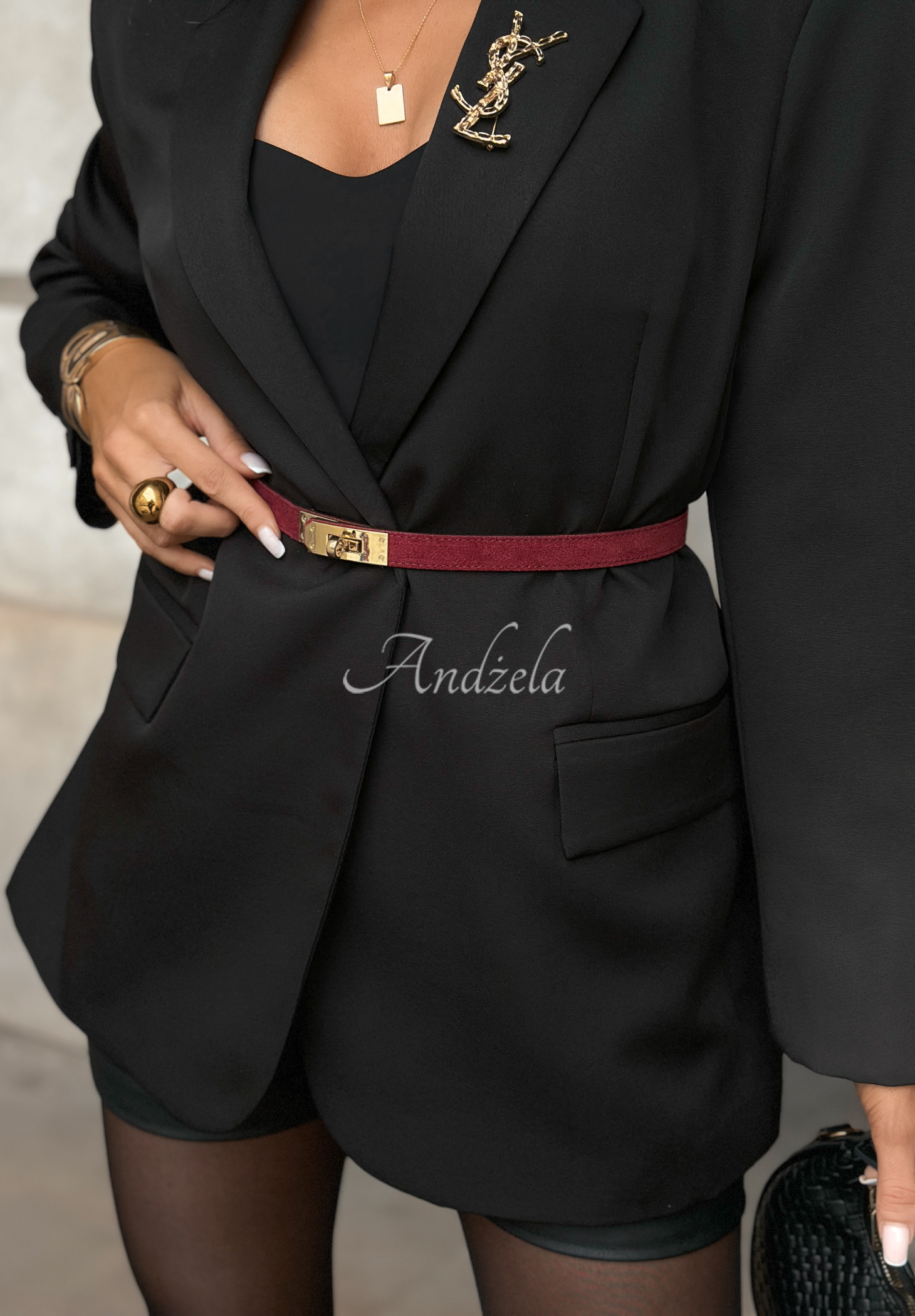 Curea îngustă, confecționată din material de piele întoarsă. Este un accesoriu subtil, cu reglaj și detaliu auriu.