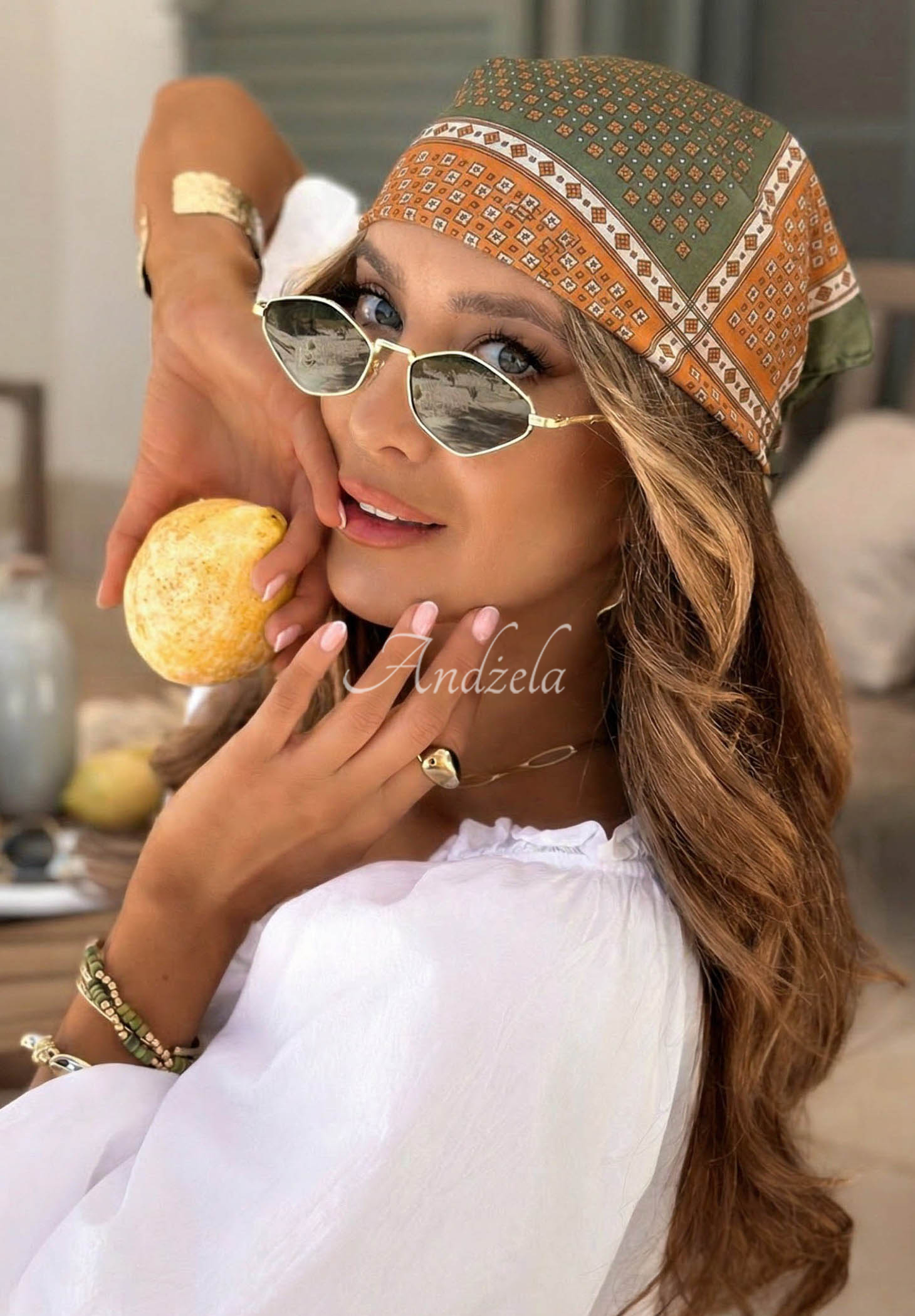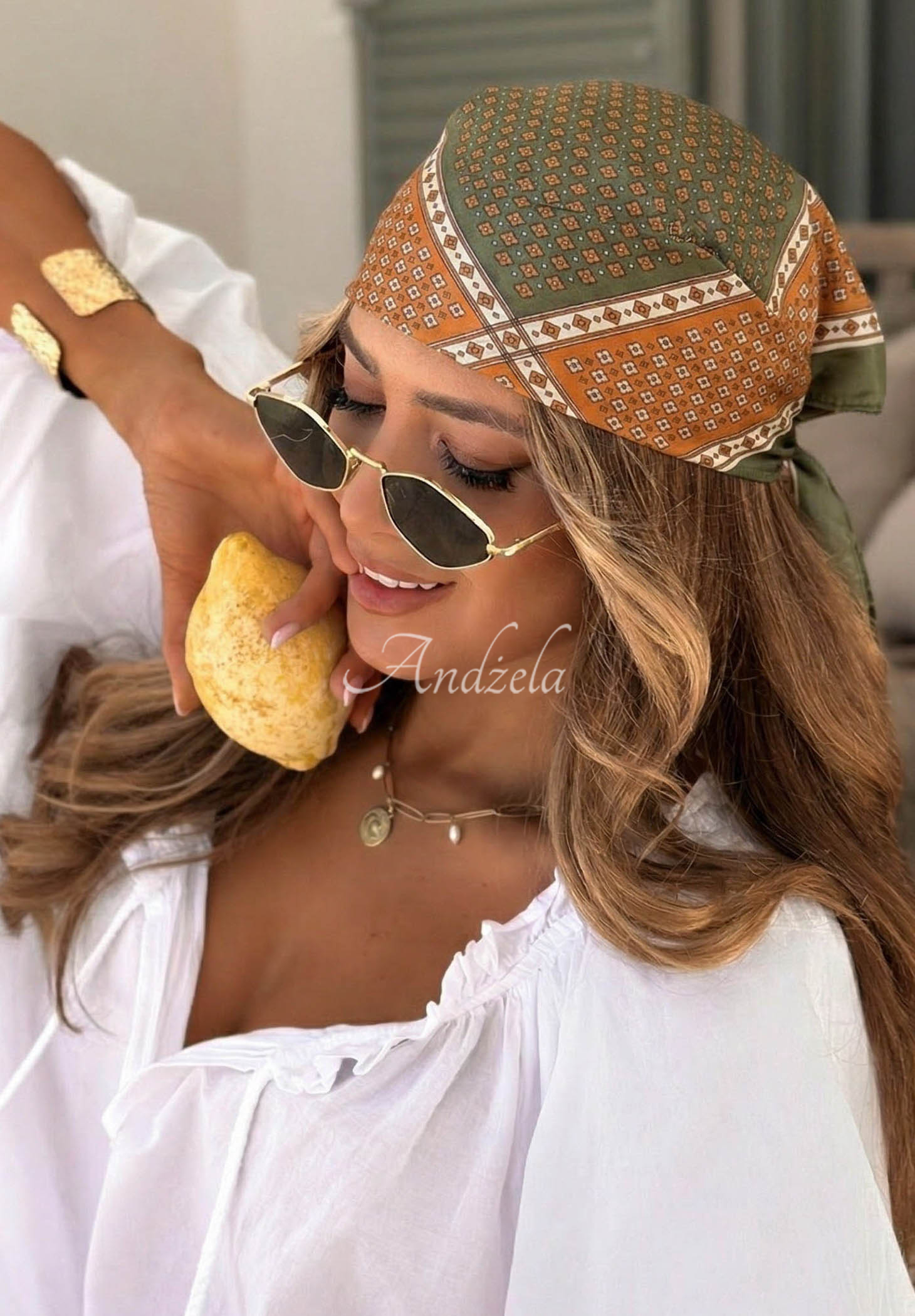Eșarfă realizată din material ușor, care se remarcă prin imprimeurile decorative.* material neelastic* imprimeuri