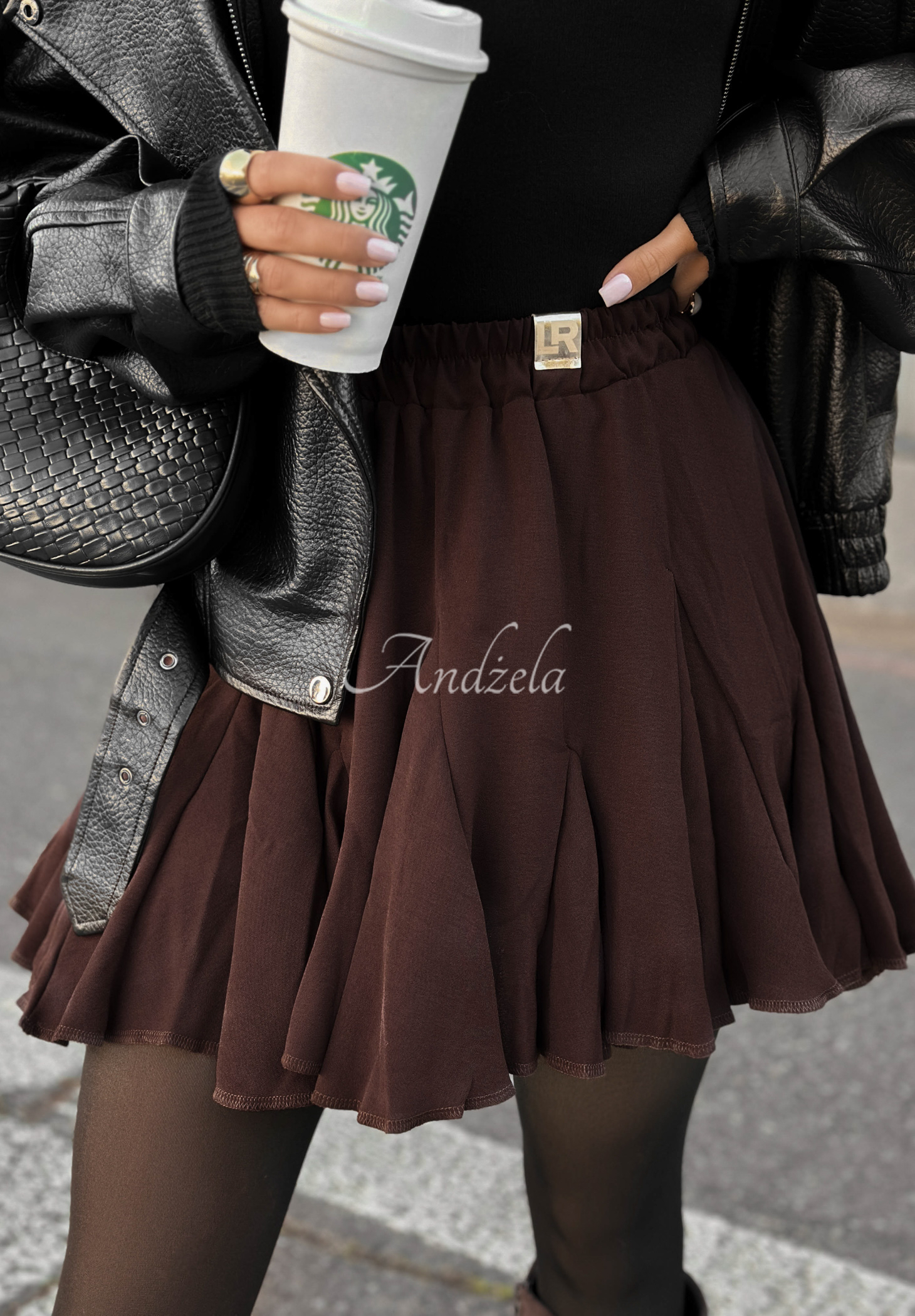 Fustă lejeră cu croială evazată, confecționată din material ușor. Este un model mini, cu elastic în talie. În față are o mică aplicație.