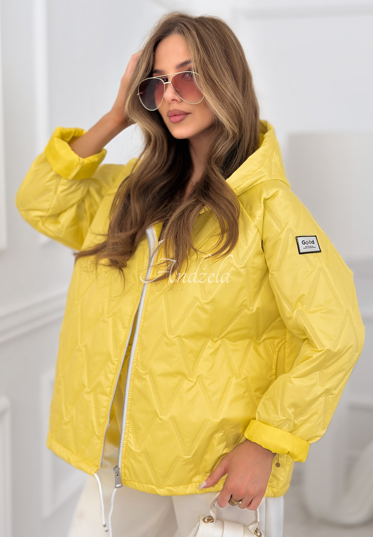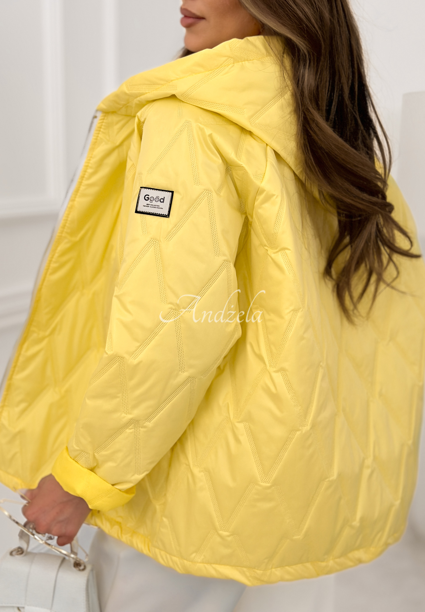 Geacă lejeră cu căptușeală sintetică ușoară. Este un model cu croială scurtă, cu glugă și șnur reglabil integrat în partea de jos. Are mâneci lungi, precum și buzunare funcționale în partea din față. Întregul design este matlasat și prevăzut cu închidere cu fermoar argintiu.