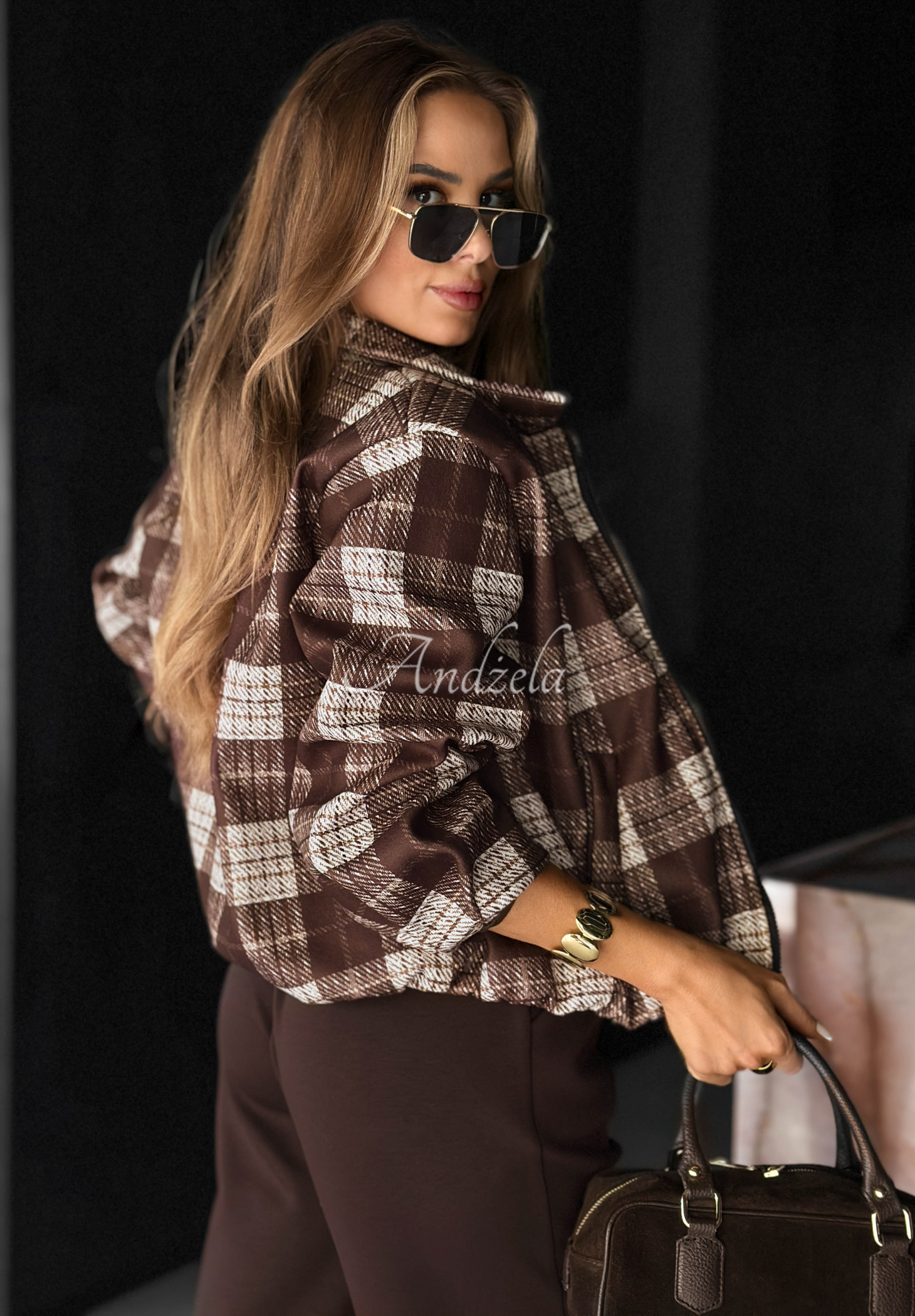 Modelul are înălțimea de 165 cm și poartă mărimea S/M.