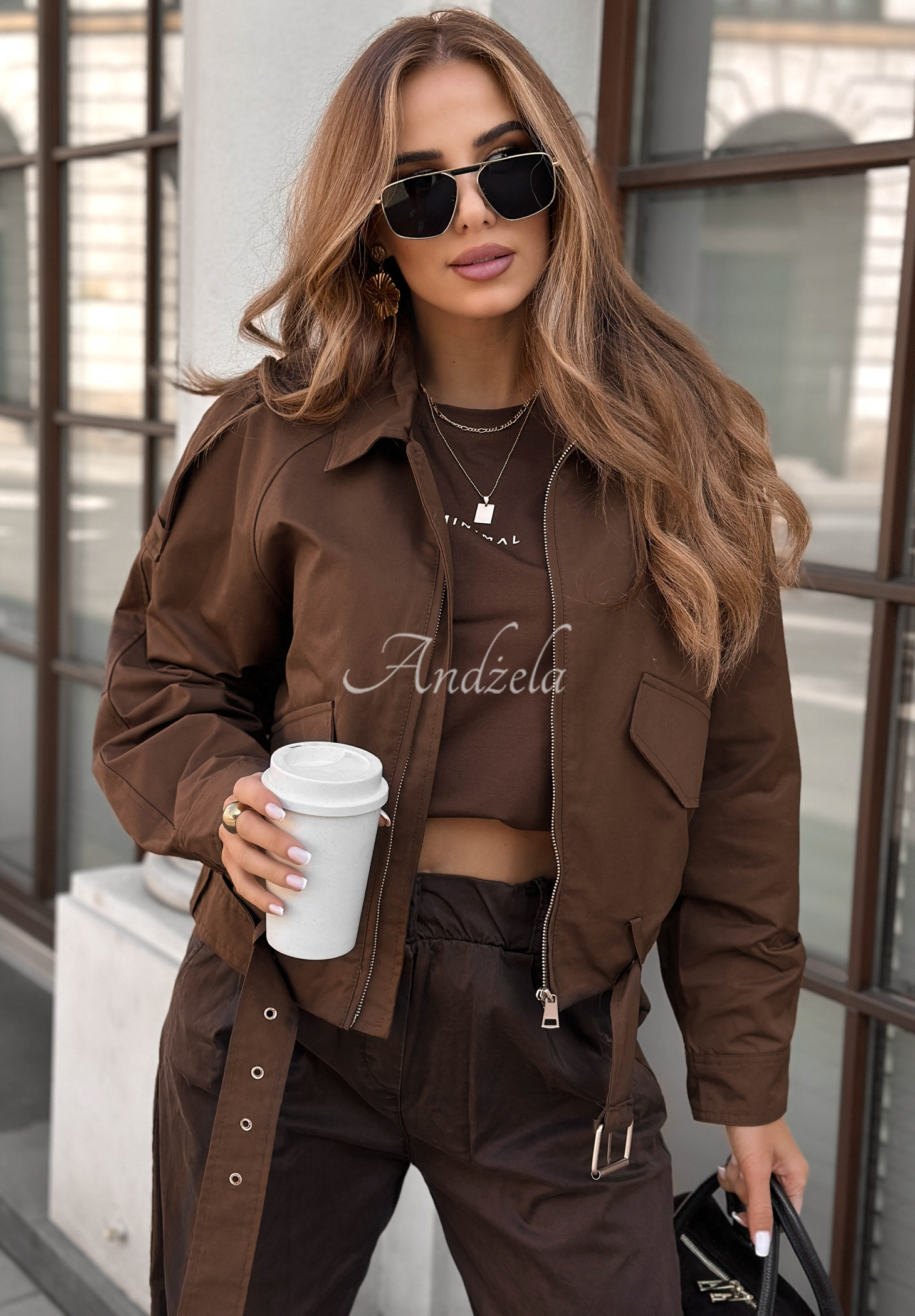 Geacă realizată din material neelastic cu adaos de bumbac. Model cu croială scurtă, prevăzut cu buzunare funcționale cu clapetă, guler și închidere cu fermoar. În partea de jos dispune de o curea reglabilă.