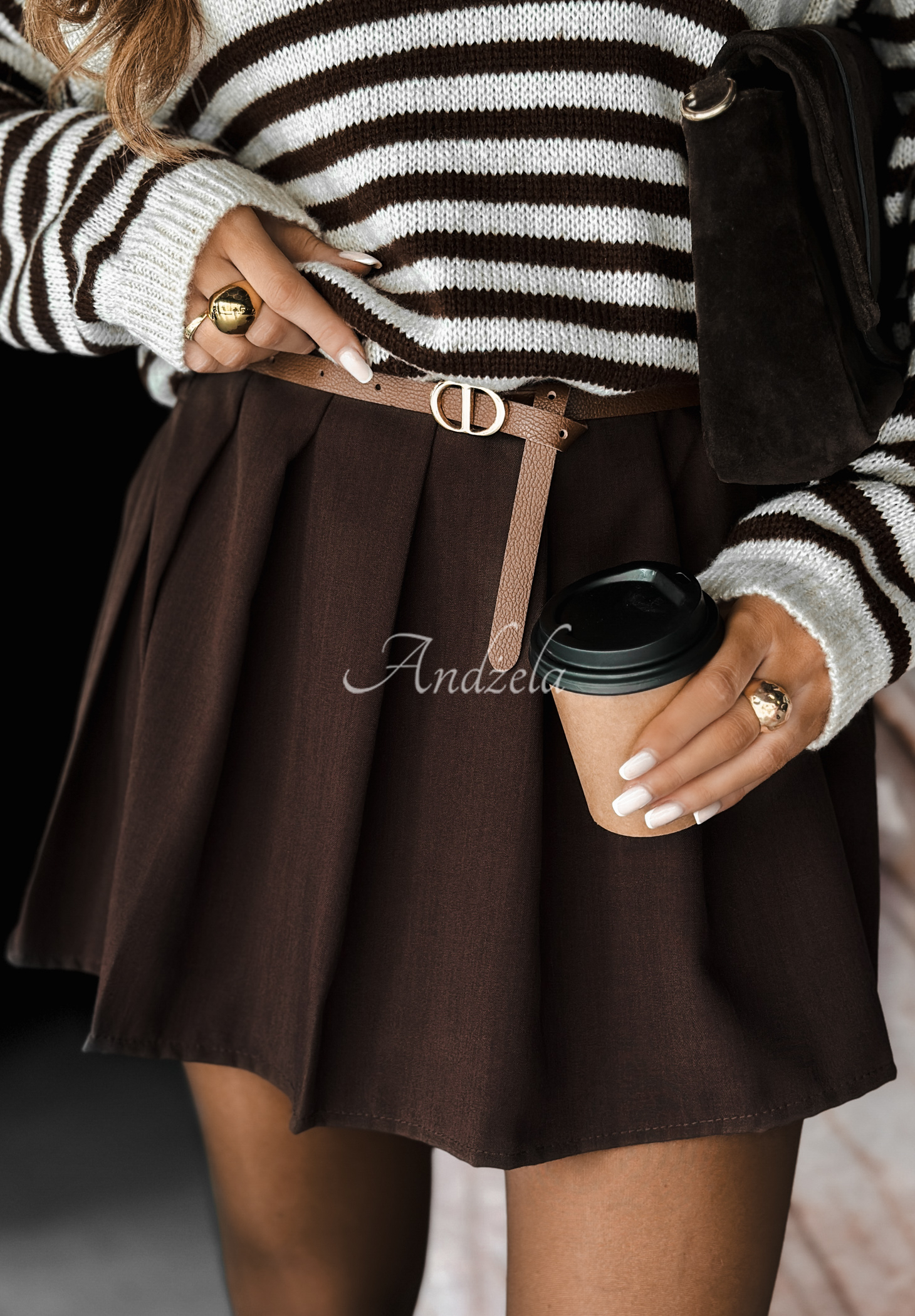 Fusta-pantalon plisată este un model cu lungime mini. Are talie înaltă și o bandă elastică la spate, datorită căreia se adaptează perfect la siluetă. Setul include o curea care completează ideal ținuta.