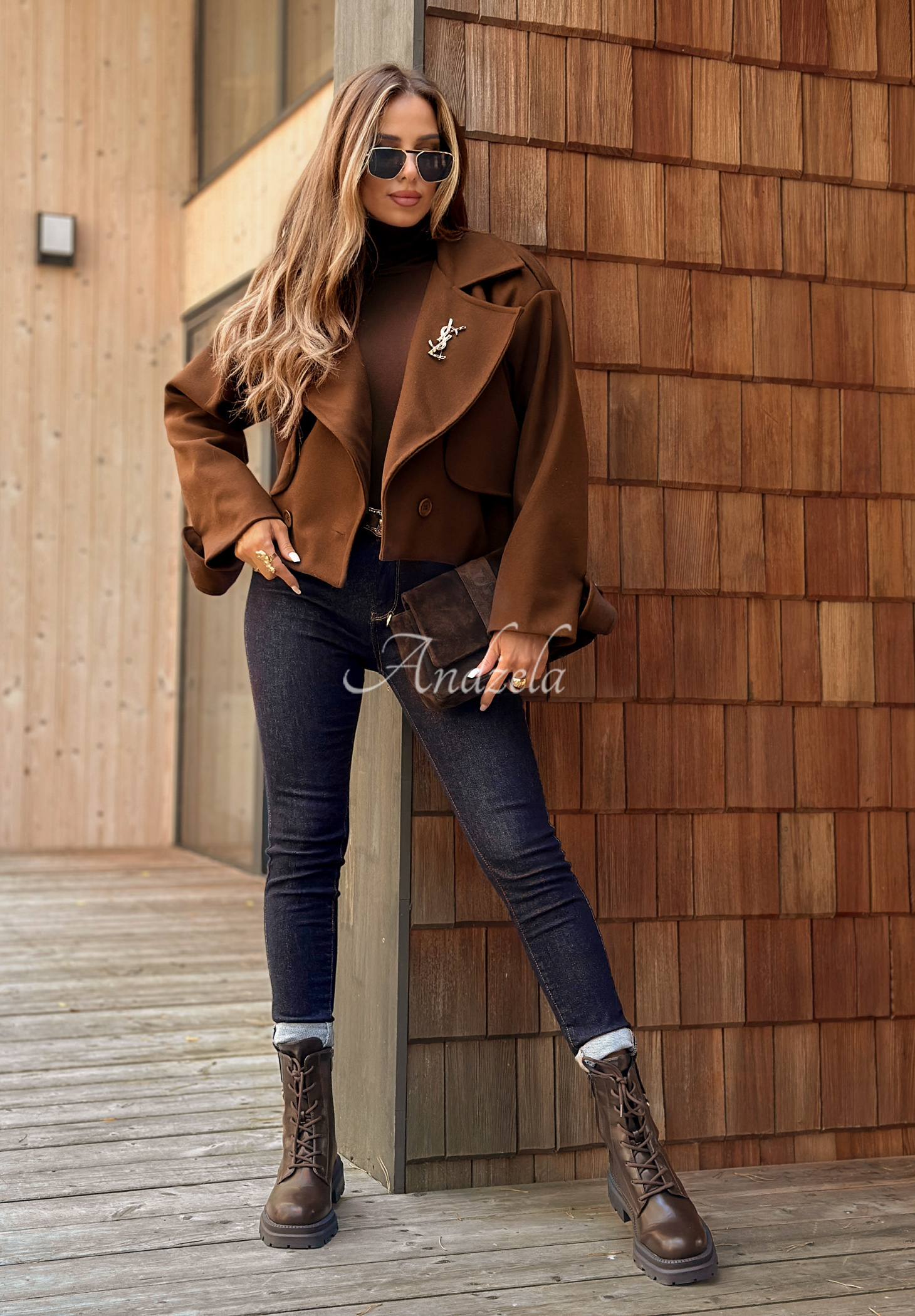Modelul are înălțimea de 165 cm și poartă mărimea S/M.