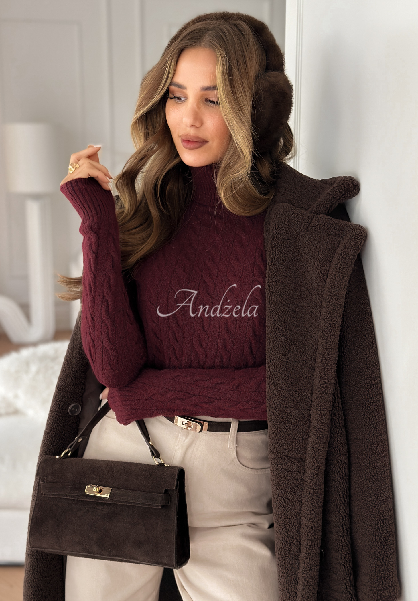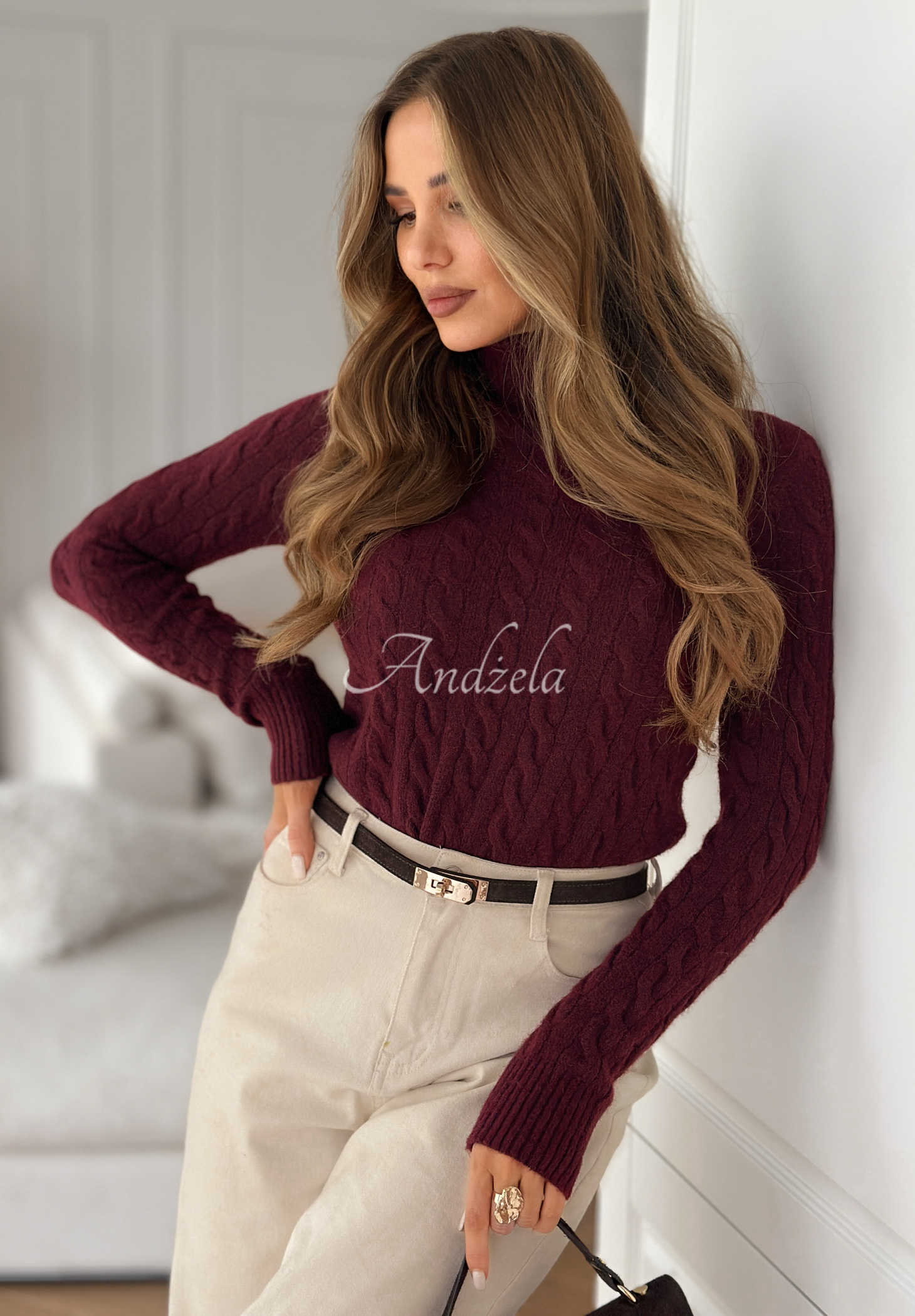 Pulover clasic, ideal ca bază pentru ținutele de toamnă și iarnă. Model tricotat cu guler înalt și mâneci lungi, terminate cu manșete. Confecționat din material moale și elastic, cu adaos de lână.