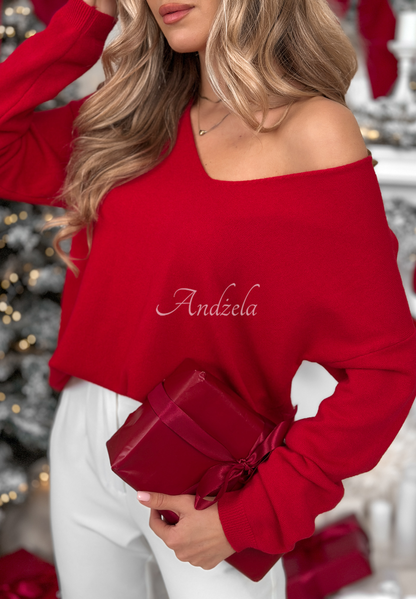 Pulover ușor din material moale și plăcut la atingere, cu viscoză. Acesta este un model oversize, cu un decolteu feminin în forma literei V. Mânecile lungi, ca și partea de jos, sunt finisate cu manșete.