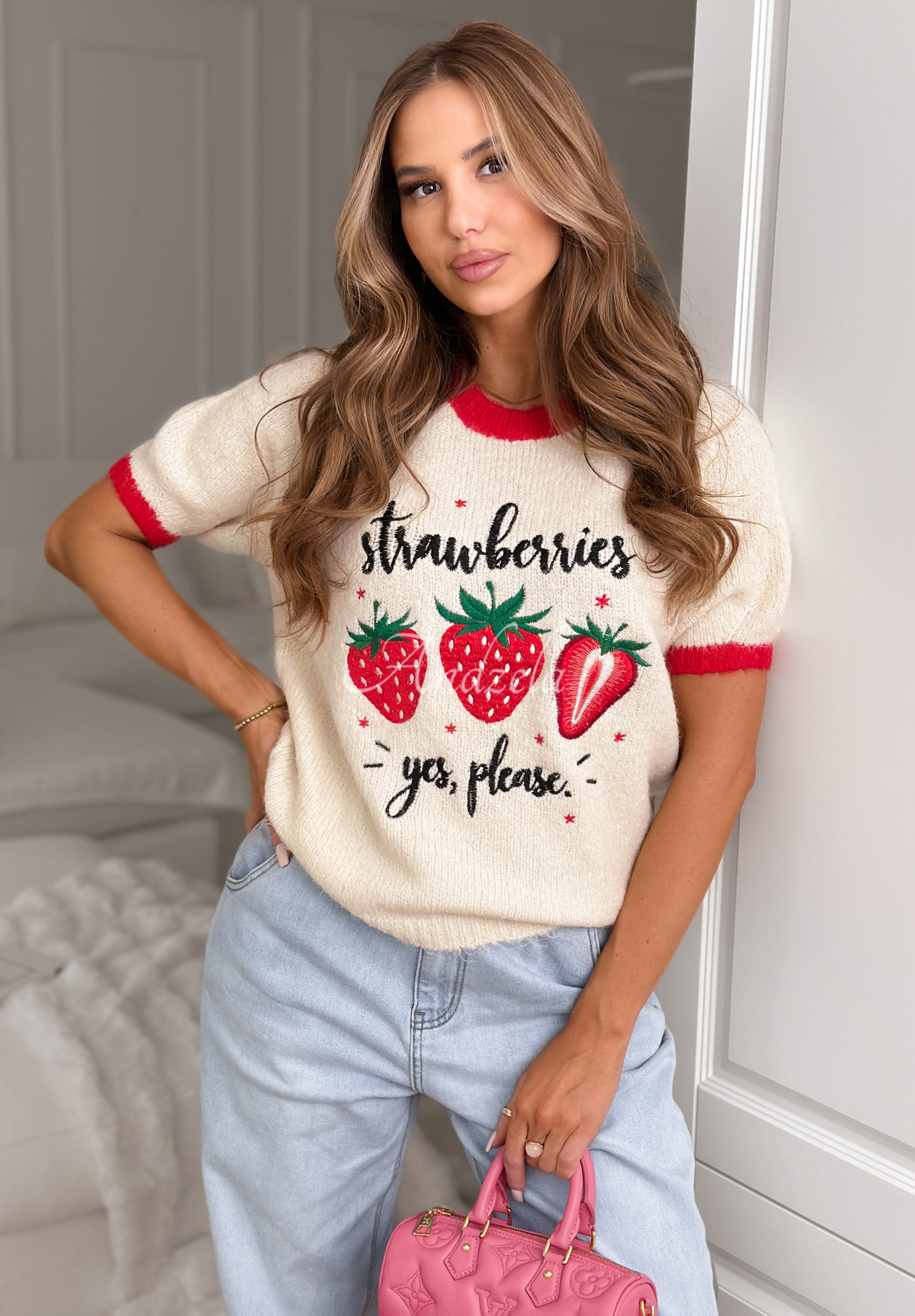 Pulover moale, realizat dintr-o țesătură plăcută cu adaos de viscoză. Se remarcă prin broderia din față și decolteul rotunjit. Modelul are manșete elastice în partea de jos și la mâneci.