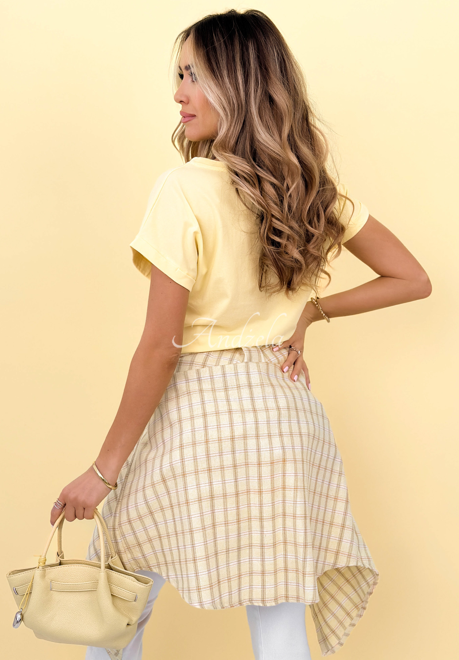 Tricou simplu, realizat din material din bumbac de calitate. Model cu mânecă scurtă și decolteu tip bărcuță.